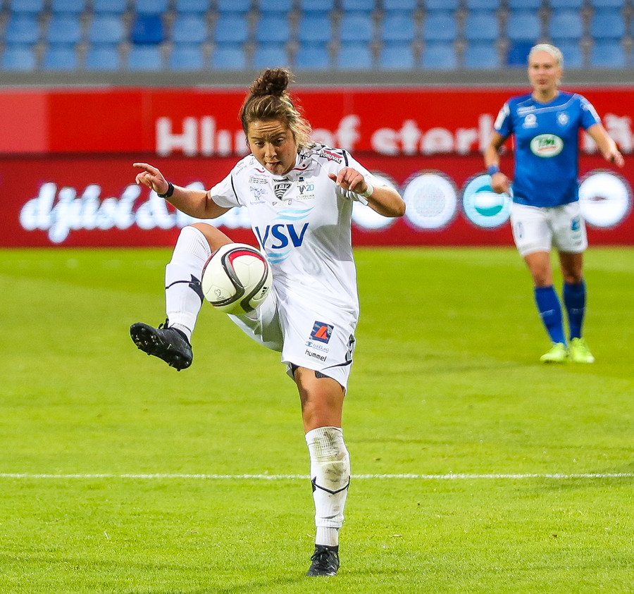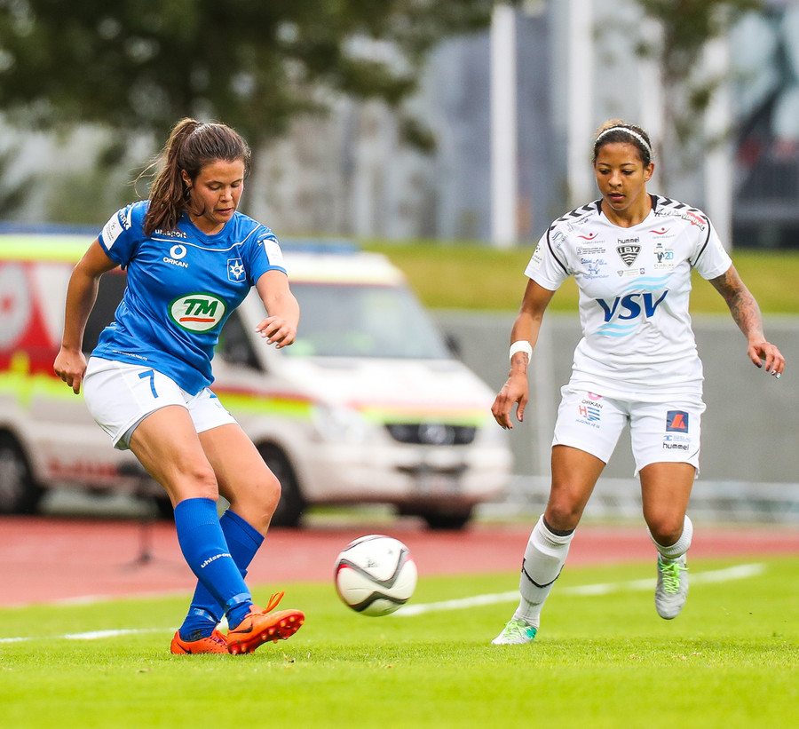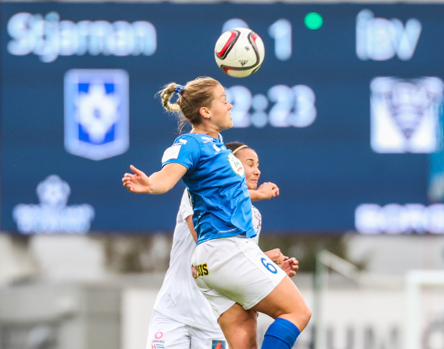 Cloé setur í fluggírinn og skilur Önnu Maríu eftir í grasinu úti vinstra megin, veður inná teiginn og reynir svo sendingu inn á Clöru á fjær en sendingin er afleit og fer hátt yfir Clöru og aftur fyrir endamörk. En Cloé virðist eiga fullt af orku eftir sem er ekki góðs viti fyrir Stjörnuna!