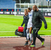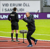 Liðin hafa lokið upphitun og ganga til búningsherbergja! Það er rétt rúmlega korter í þessa veislu!