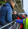 Ég get ekki heyrt betur en að Grindvíkingurinn með gítarinn sé mættur í stúkuna! Það er mikið stuð og mikil stemning hjá Eyjamönnum!