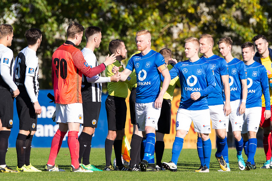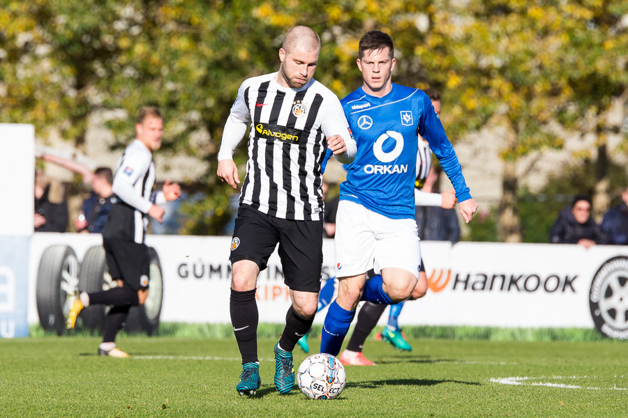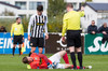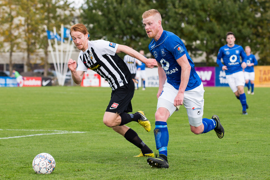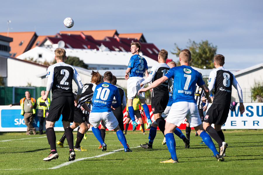 Tobias fellur hér með tilþrifum og fær aukaspyrnu. Í kjölfar aukaspyrnunar á Finnur Orri skot en það er framhjá.