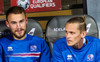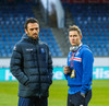Á meðan þjálfarteymi beggja liða eru í einhvejrum svakalegustu dúnúlpum sem ég hef séð þá stendur Dúllan (Siggi Dúlla) á stuttermabolnum GRJÓTHARÐUR á miðjunni.