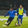 Bæði lið eru núna á fullu í sinni upphitun. Það er gerir hellirigningu eins og staðan er akkúrat núna.