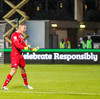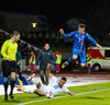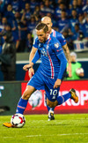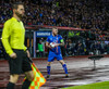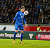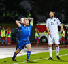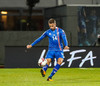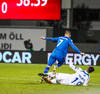 Hörður Björgvin brýtur á leikmanni Kósóvó og aukapsyrna réttilega dæmt. Kemur þá Ujkani rjúkandi útur markinu og segir einhver vel valin orð við dómarann og uppsker gult spjald.