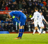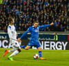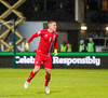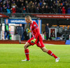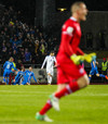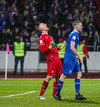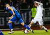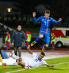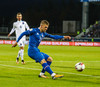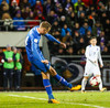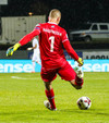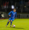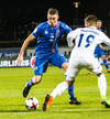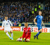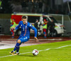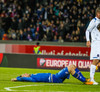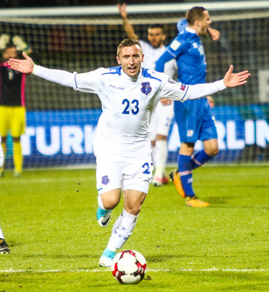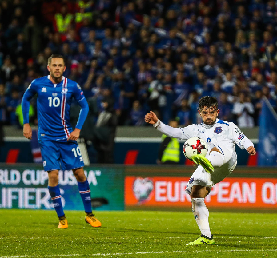 Skotið hinsvegar ekki gott, lítiill kraftur í því og boltinn rúllar framhjá marki Kósóvó.