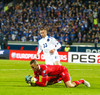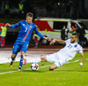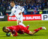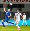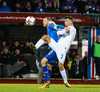 Leikmenn Kósóvó koma boltanum burt í þeirri síðari.