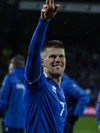 Jón Daði fær gott klapp frá stúkunni, eðlilega.
