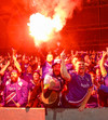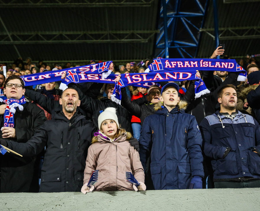 Það hvernig okkur gengur að halda uppi spjöldum og mynda mynstur kemur upp um hvað það er stutt síðan fólk fór að mæta á landsleiki. pic.twitter.com/JNGtPl7TrW
