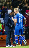 Helgi útskýrir byrjunarliðið: Gylfi færist ofar. Viljum meiri stöðugleika á miðjunni. Kósóvar eru með sína hættulegustu menn þar. #hmrúv pic.twitter.com/o5nChs9KHo