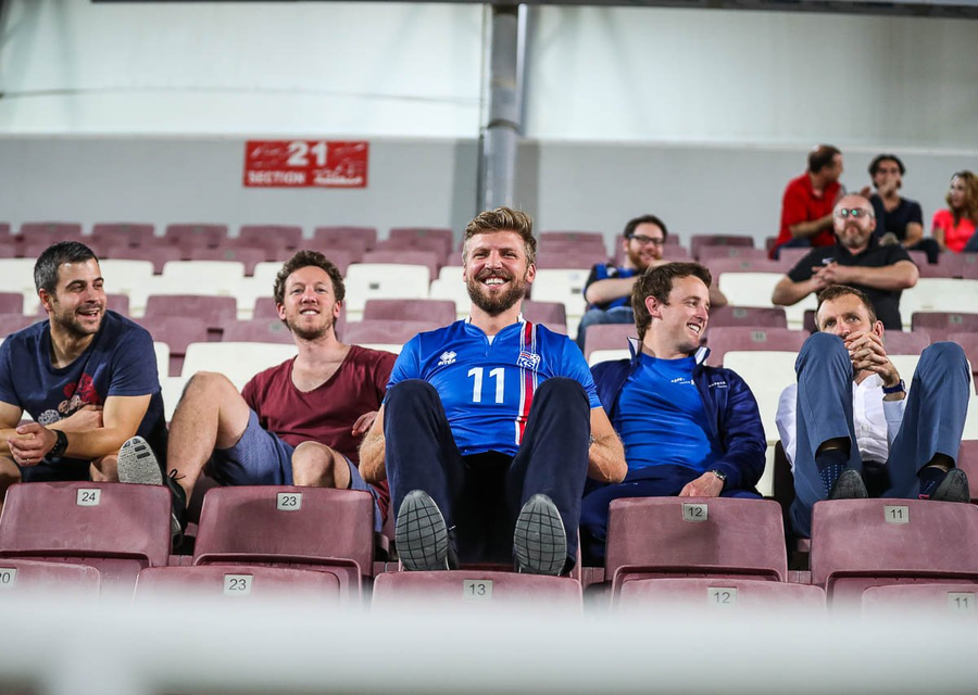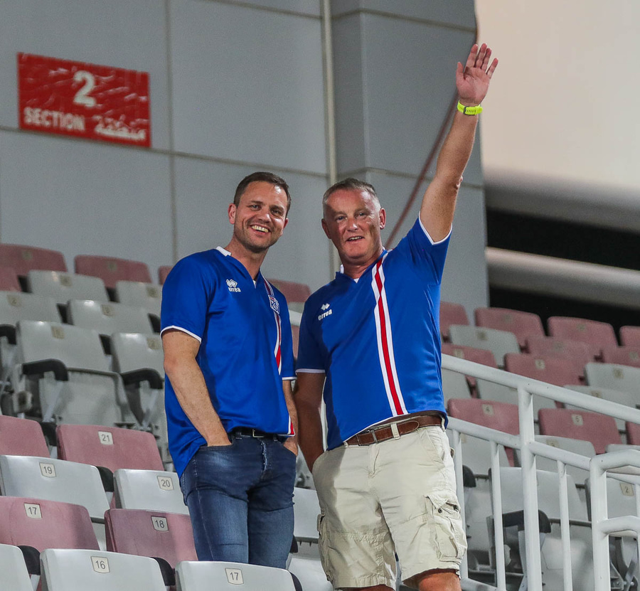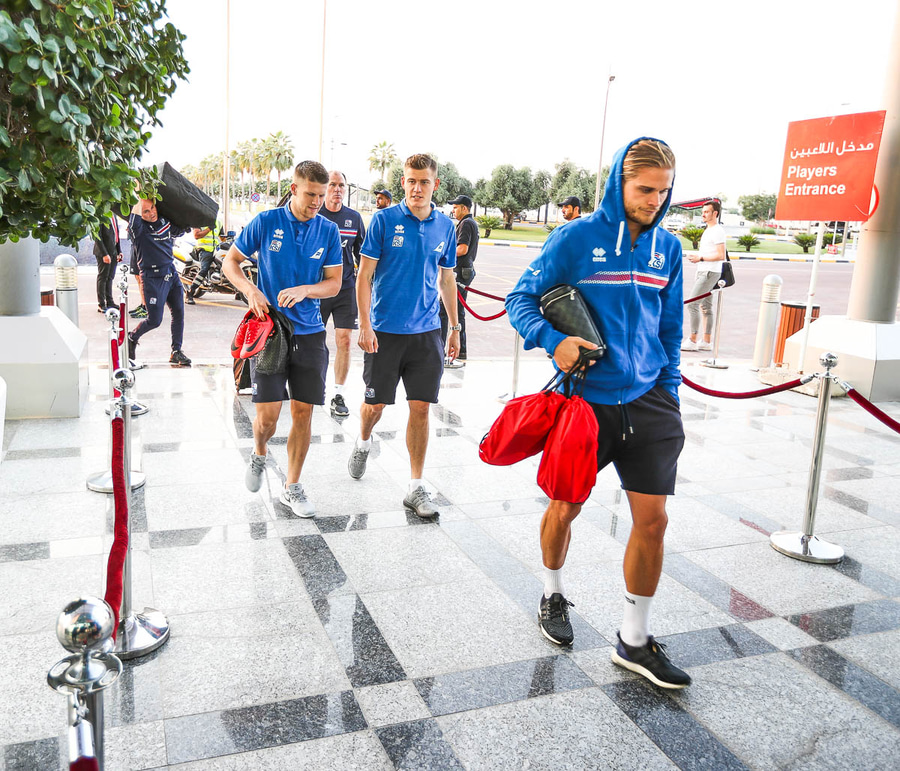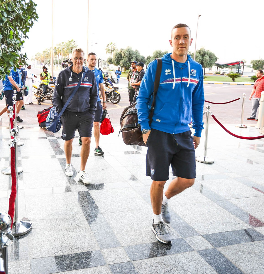 Það er óhætt að segja að það sé létt yfir íslenska hópnum enda fara menn algjörlega pressulausir í þetta landsleikjahlé. HM miðinn er í húsi (maður brosir alltaf þegar þetta er skrifað).