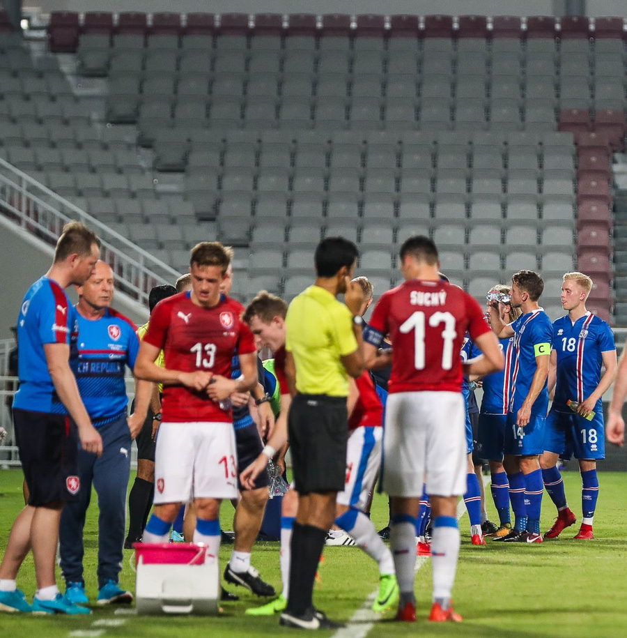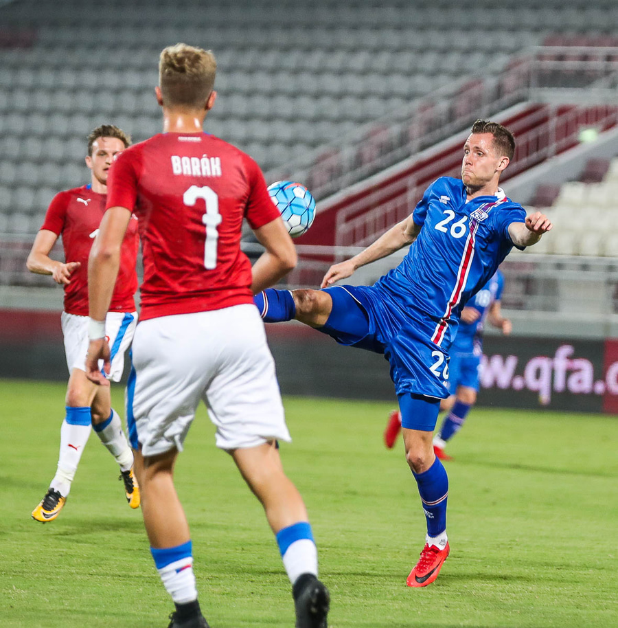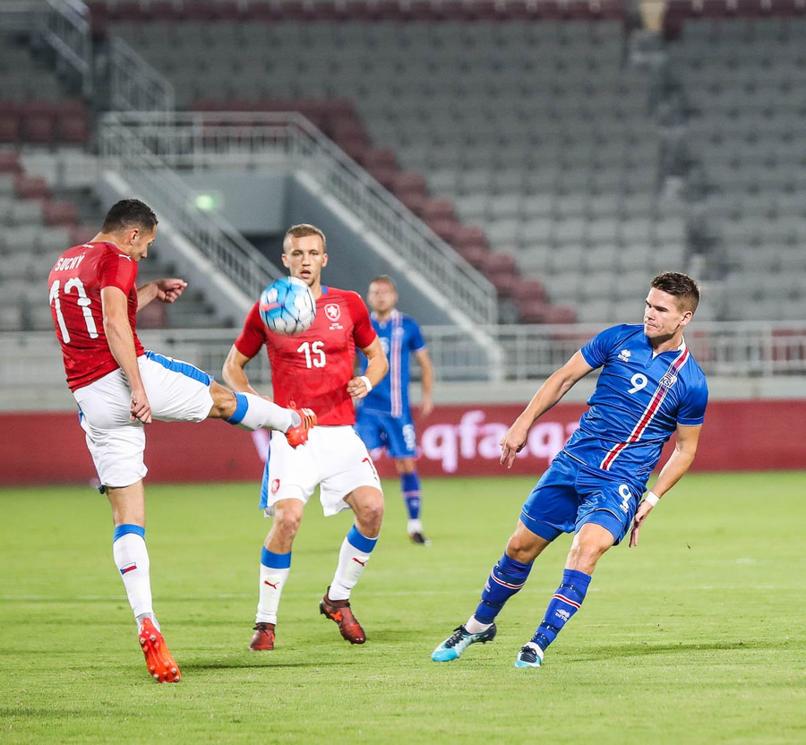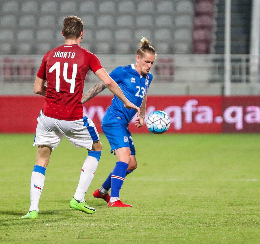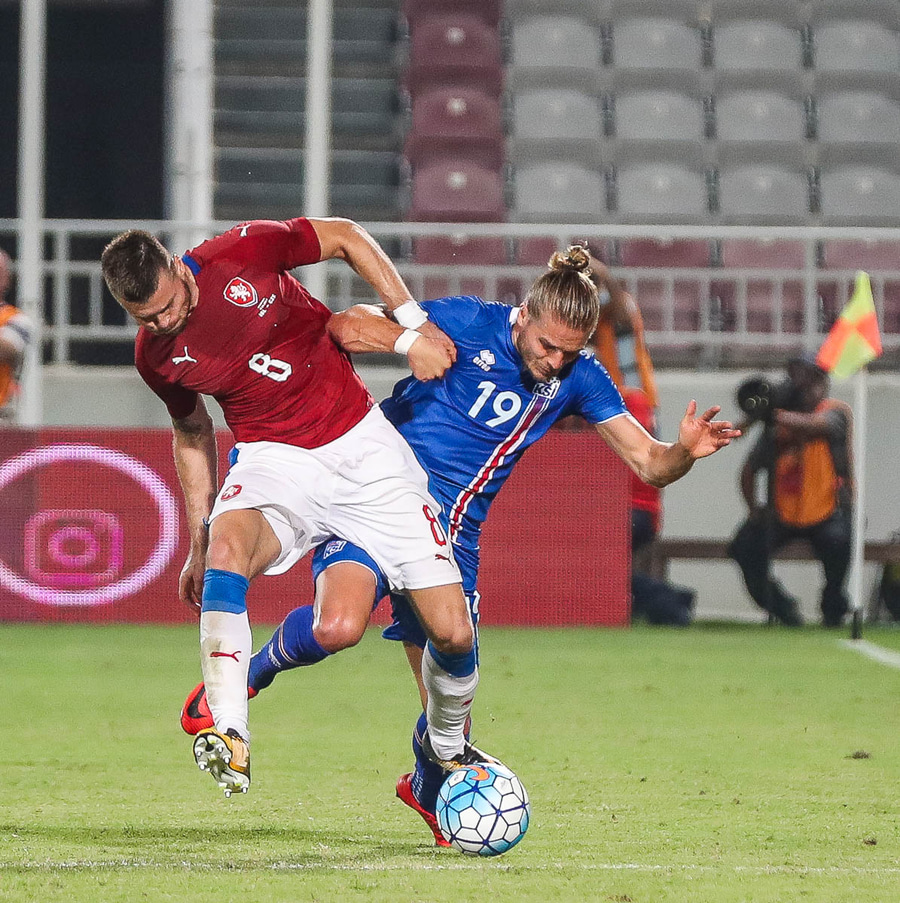 Ísland átt 7 skot, Tékkland 5. Mótherjinn verið meira með boltann en það er ekki óalgengt í landsleikjum Íslands.