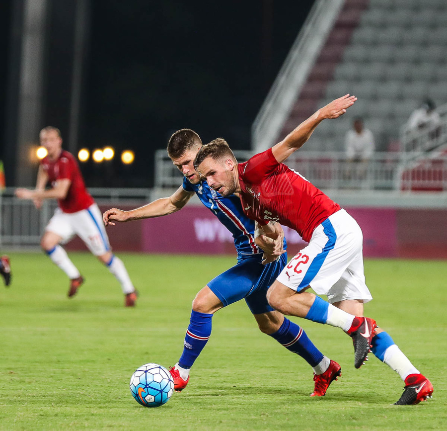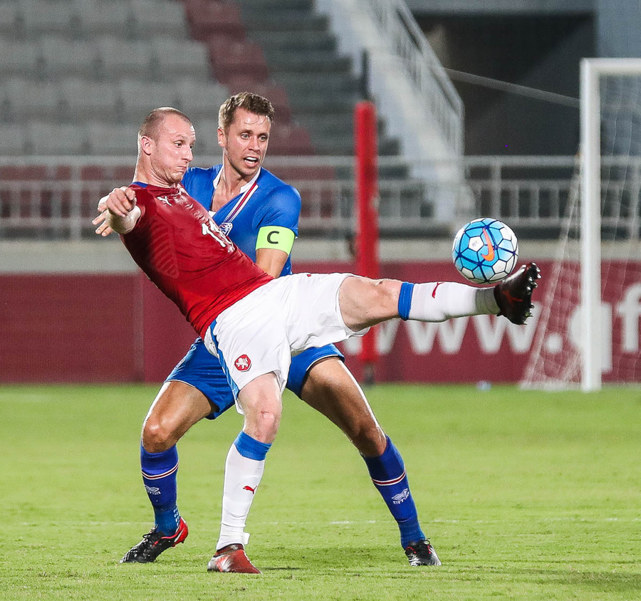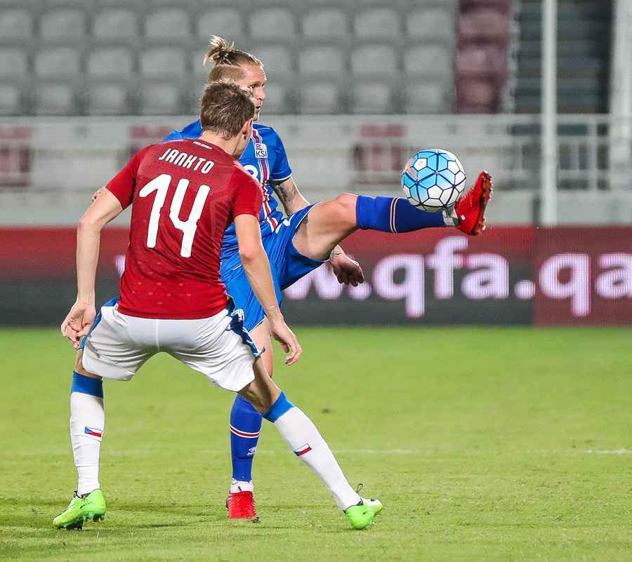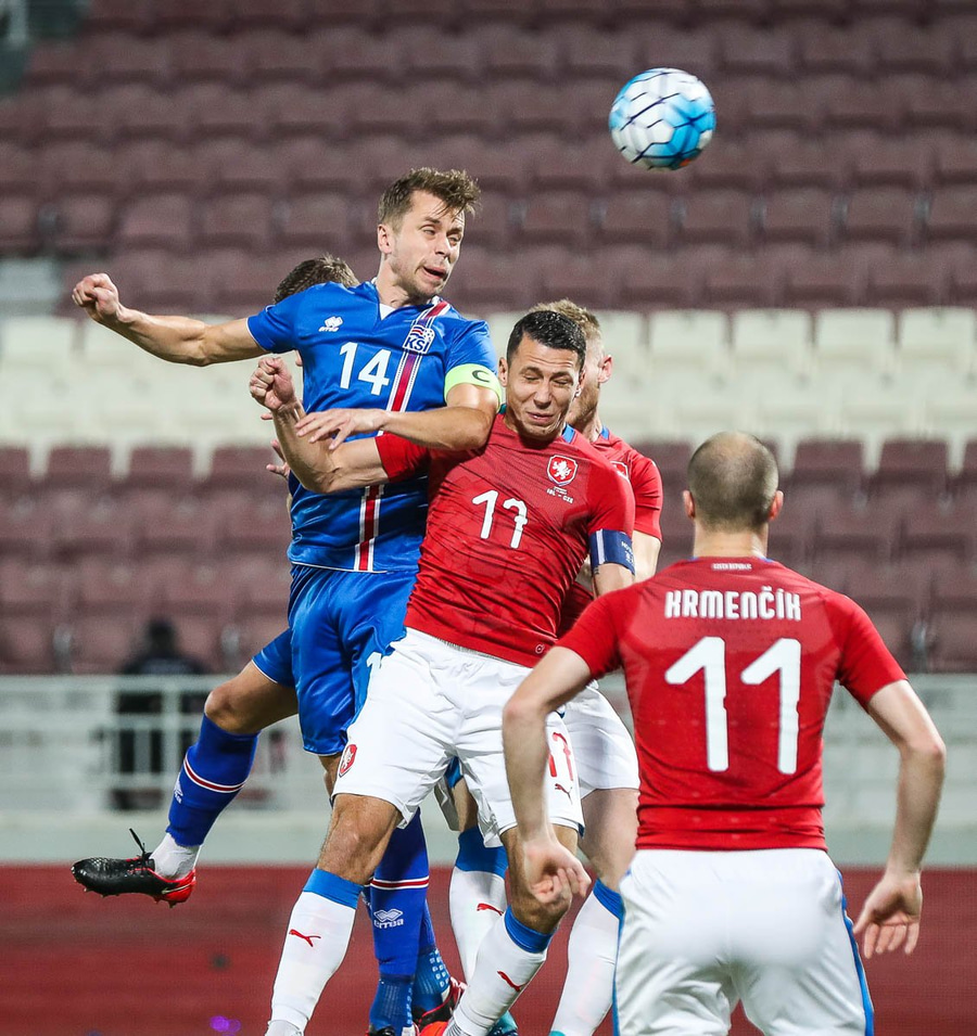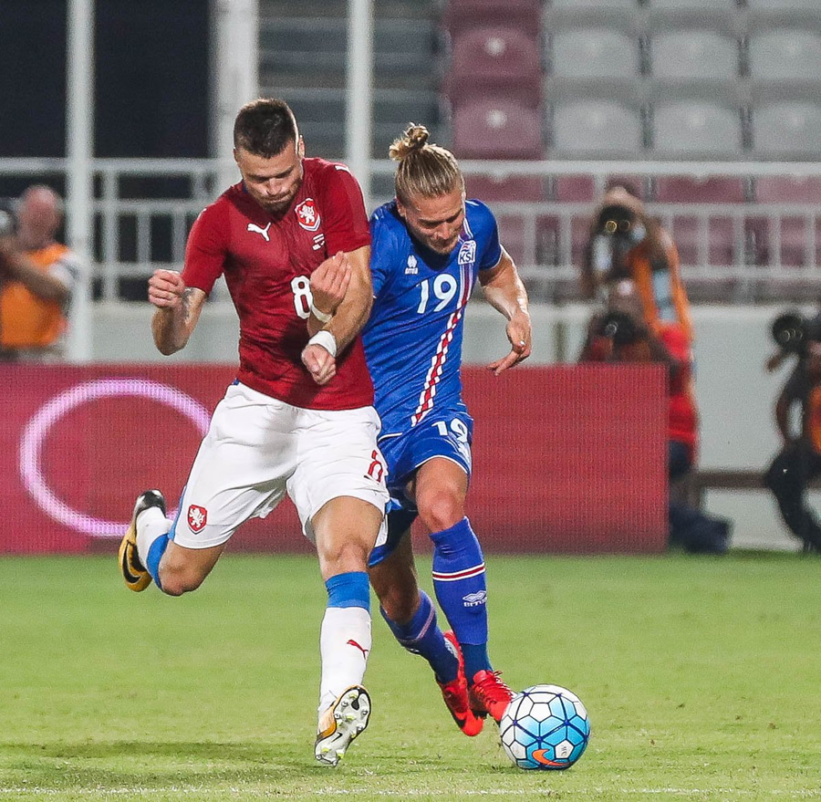 Ísland átt 7 skot, Tékkland 5. Mótherjinn verið meira með boltann en það er ekki óalgengt í landsleikjum Íslands.