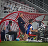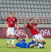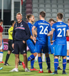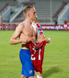 Kjartan Henry mjög ósáttur við sjálfan sig, hvernig hann kláraði þetta færi, og lemur í jörðina.