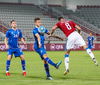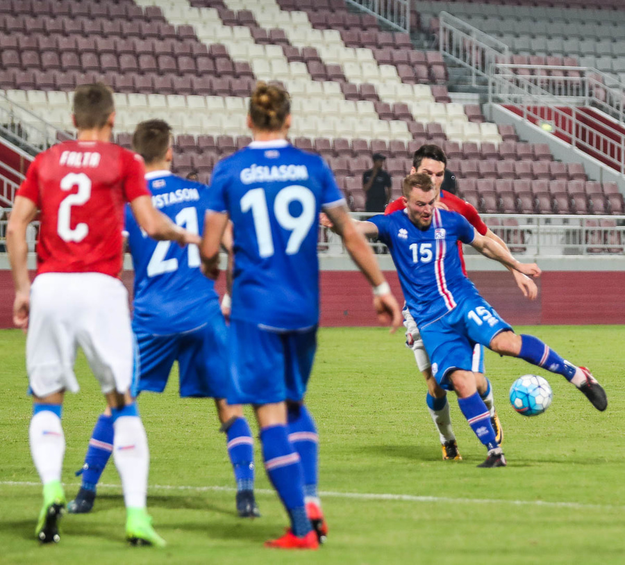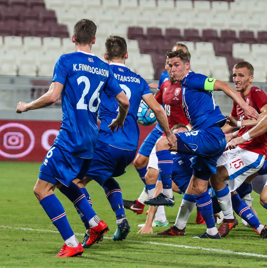 Einu þrjár hættulegu tilraunir leiksins komið frá íslenska liðinu.