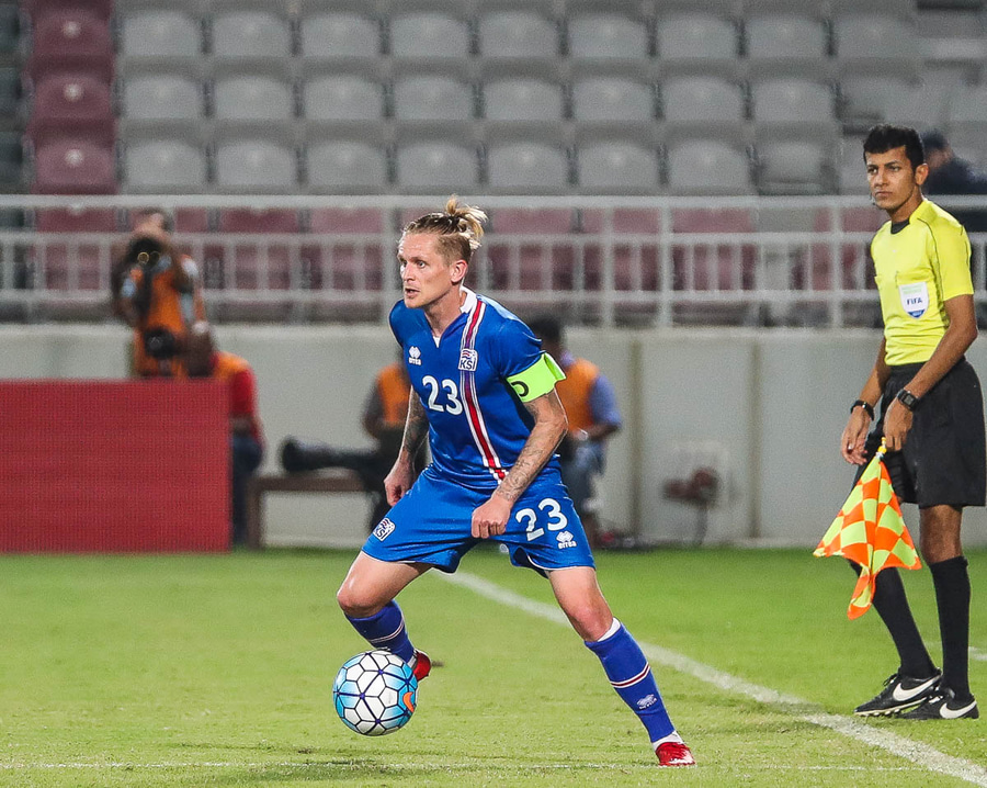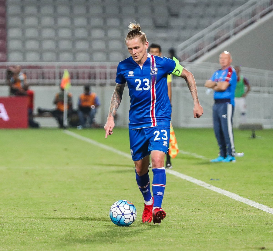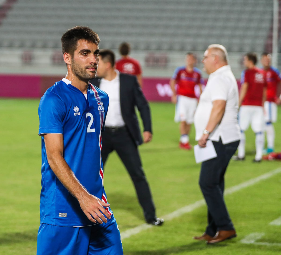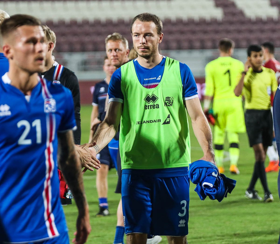 Ari Freyr Skúlason byrjar á vinstri kantinum en hann er vanari því að spila í bakverði. Þeir Birkir Bjarnason og Ólafur Ingi Skúlason eru saman á miðjunni.