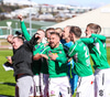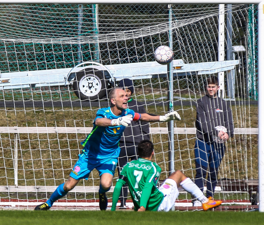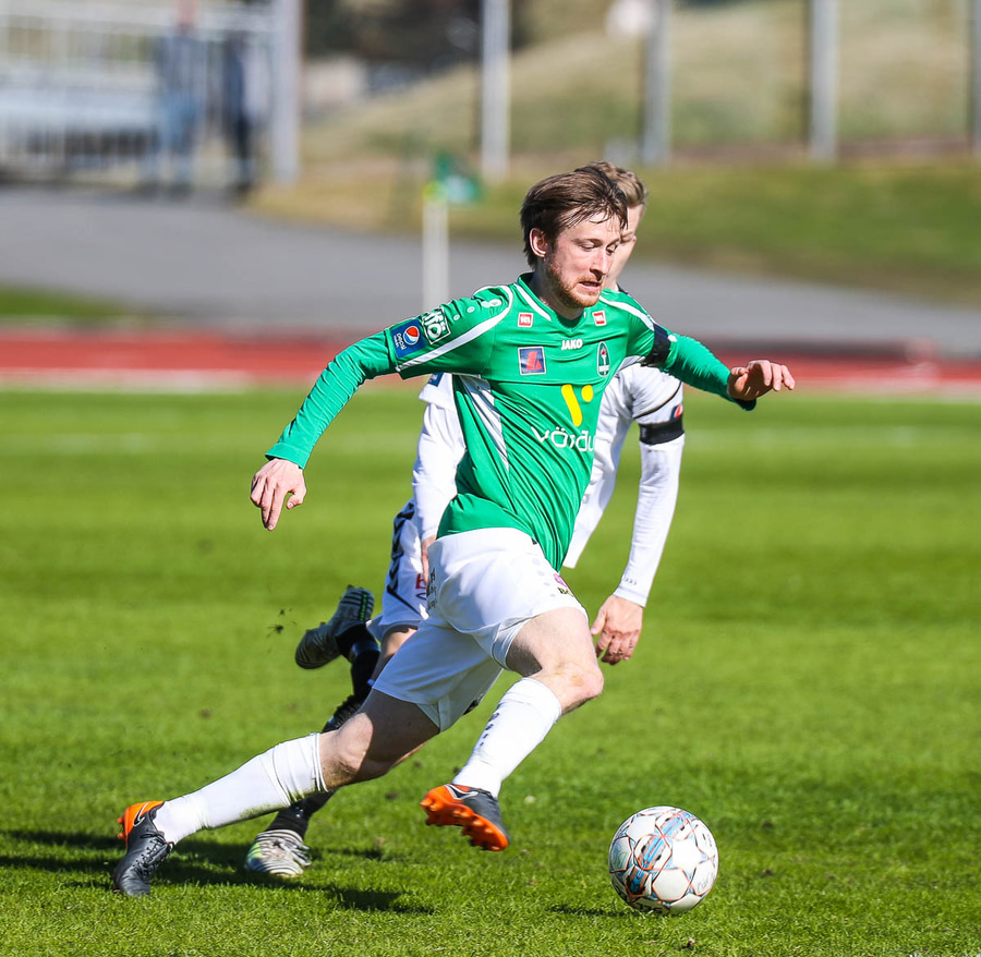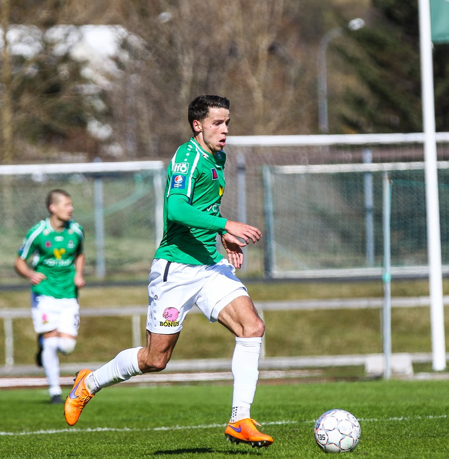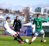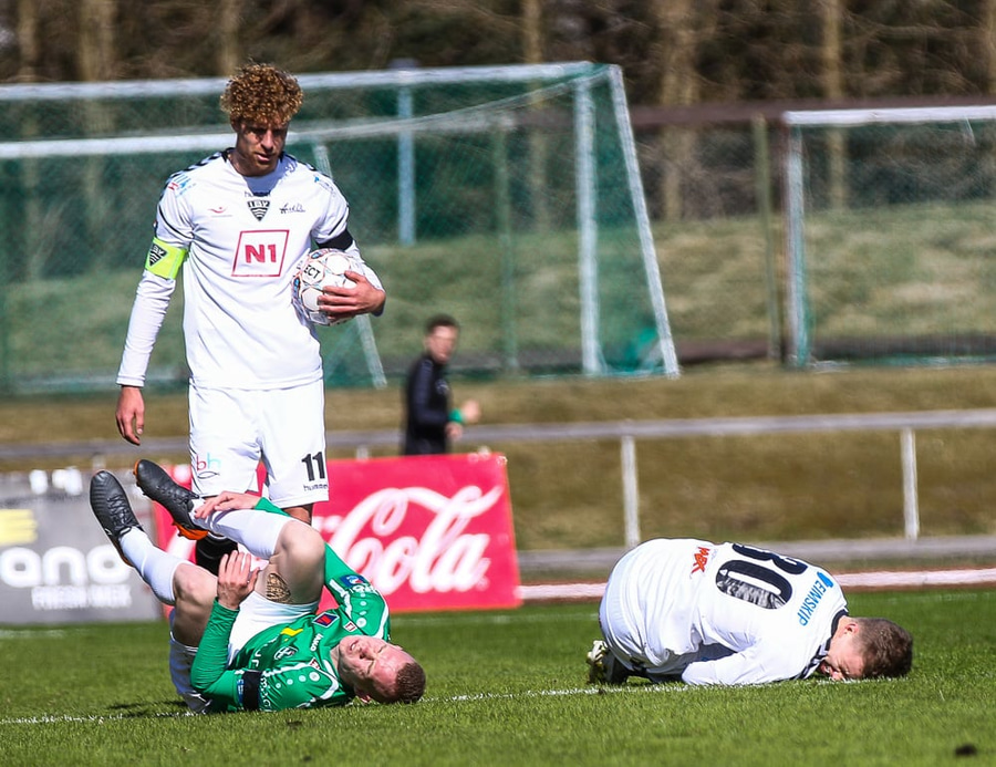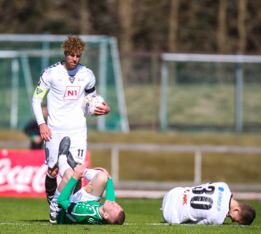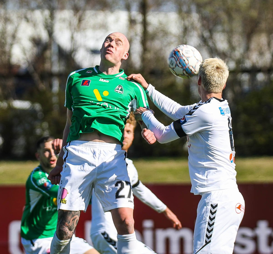 Arnþór Ari reynir fyrirgjöf frá hægri en guð minn almáttugur. Hann skóflar boltanum líklega 30 metra upp í loftið og aftur fyrir markið.