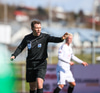 Eyjamenn allt annað en sáttir á hliðarlínunni og Andri Ólafsson aðstoðarþjálfari ÍBV bítur í hnúfann sinn.