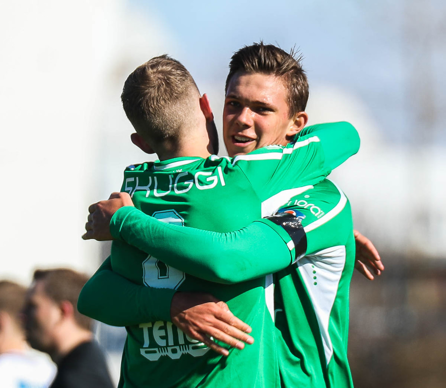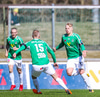 Davíð Kristján með háa sendingu upp völlinn þar sem Sveinn Aron skallar boltann niður á Gísla sem er við vítateigslínuna, hann tekur boltann með sér og á síðan arfaslakt skot meðfram jörðinni framhjá nærstönginni.