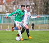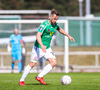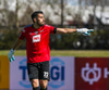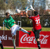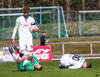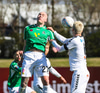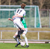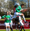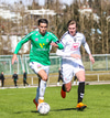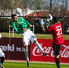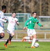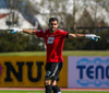Missir boltann klaufalega framarlega á vellinum og togar síðan í Felix og uppsker gult kort.