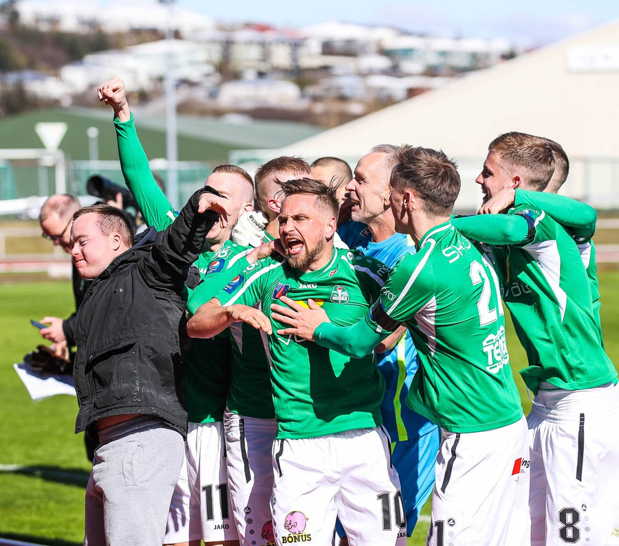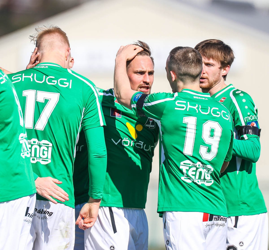 Dagur Austmann tók hornspyrnuna sem var föst og fór alveg yfir á fjærstöngina og gott betur en það. Erichot reyndi að ná til boltans en hafði ekki erindi sem erfiði.