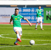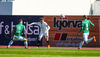 Jonathan Hendrickx með fyrirgjöf sem fer í gegnum allan pakkann inn í teig og boltinn skoppar framhjá fjærstönginni.