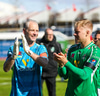 Liðin eru að ganga út á völlinn. Það fer að styttast í að leikurinn fari að hefjast.