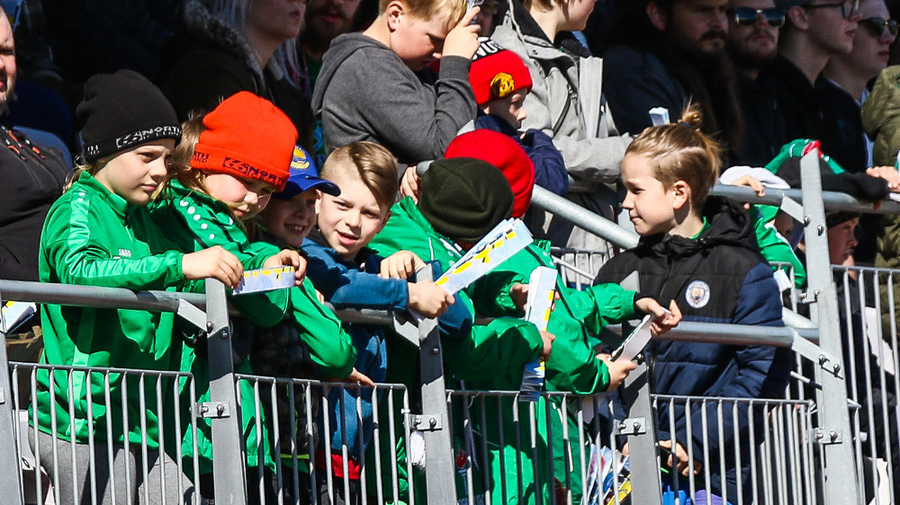 Fólk er byrjað að mæta í stúkuna 40 mínútum fyrir leik.