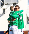 Fyrirgjöf inn í teig sem Hendrickx nær ekki að hreinsa betur en svo að boltinn dettur beint fyrir fætur Gunnars Heiðars sem er rétt fyrir framan markteigslínuna. Skot Gunnars fer nánast beint á Gunnleif sem nær að halda boltanum.
