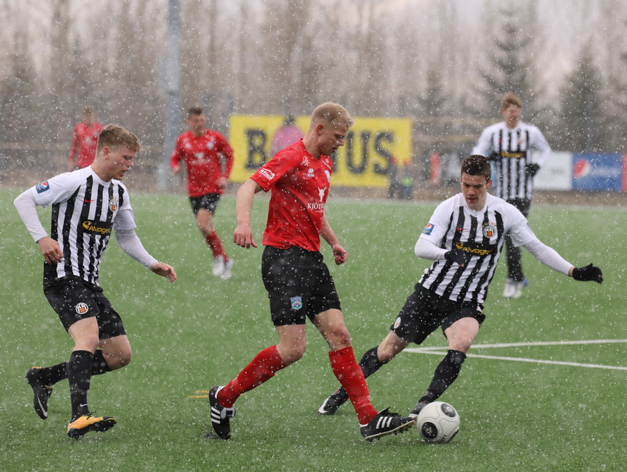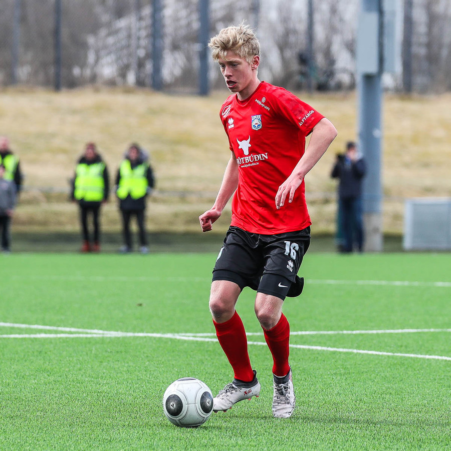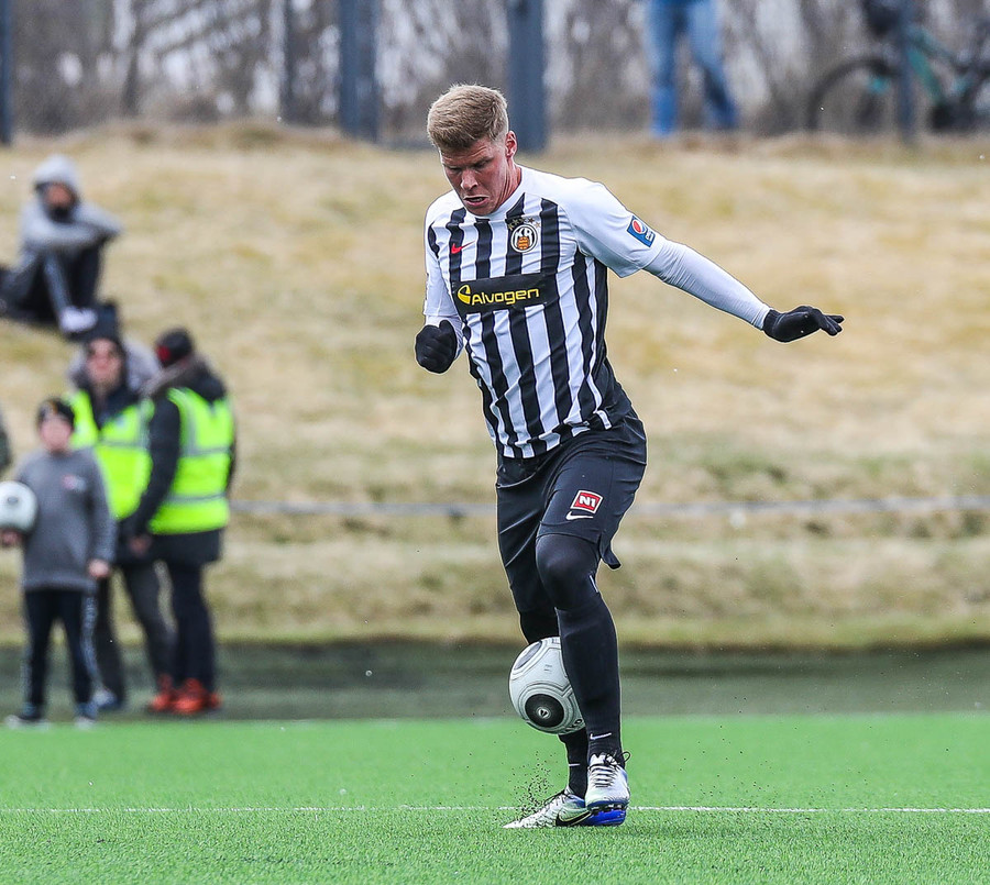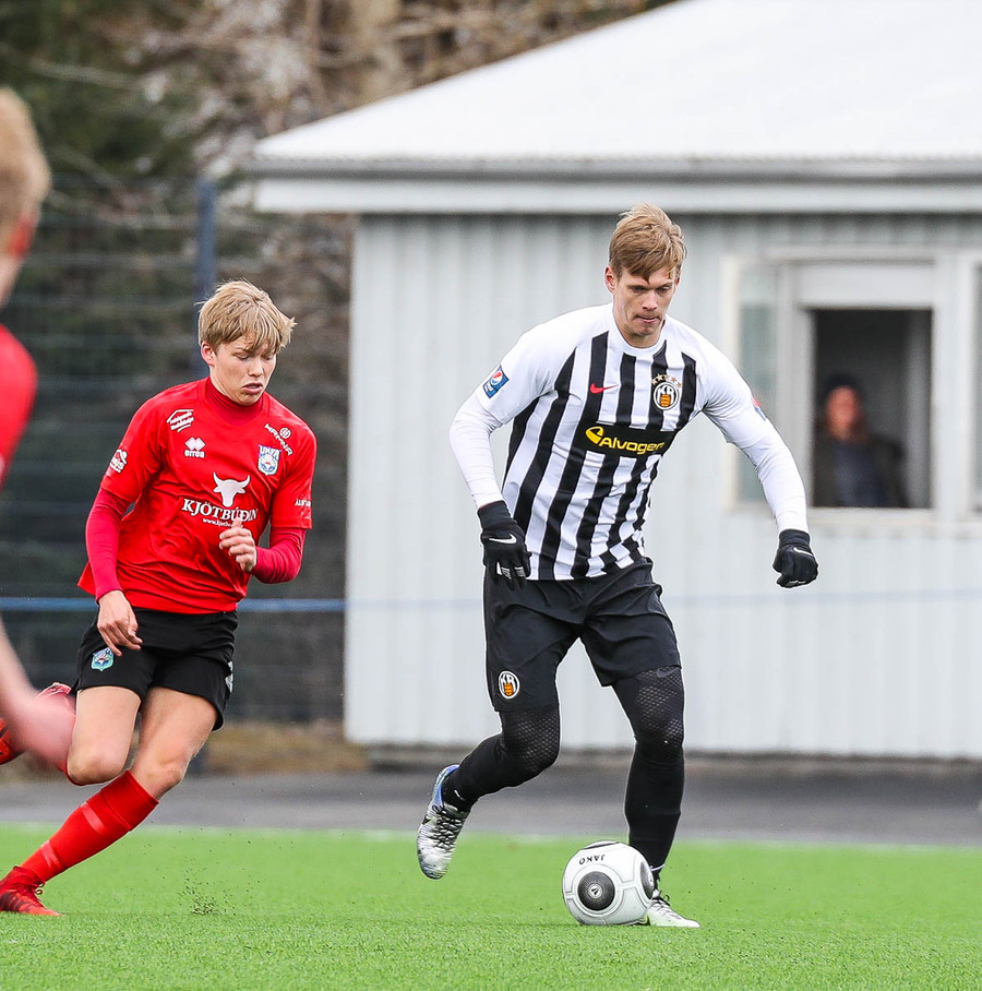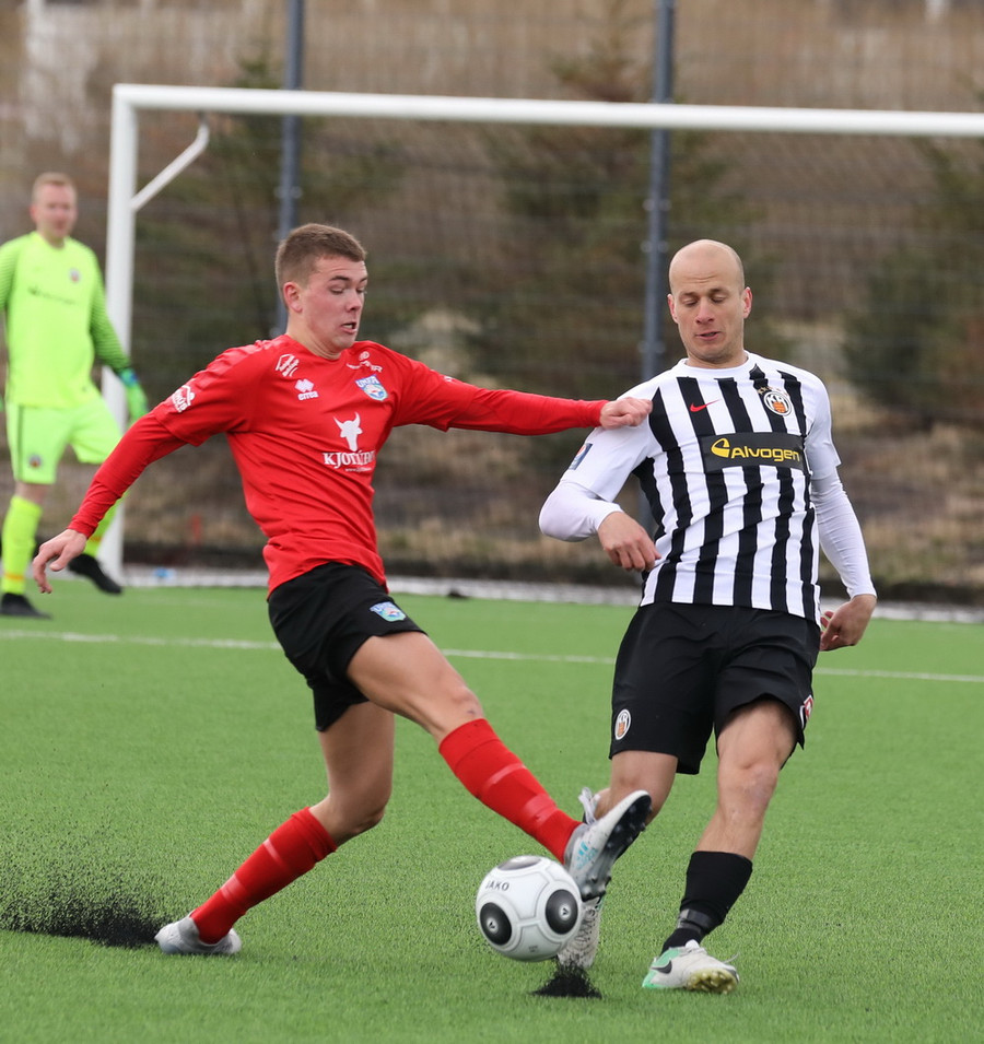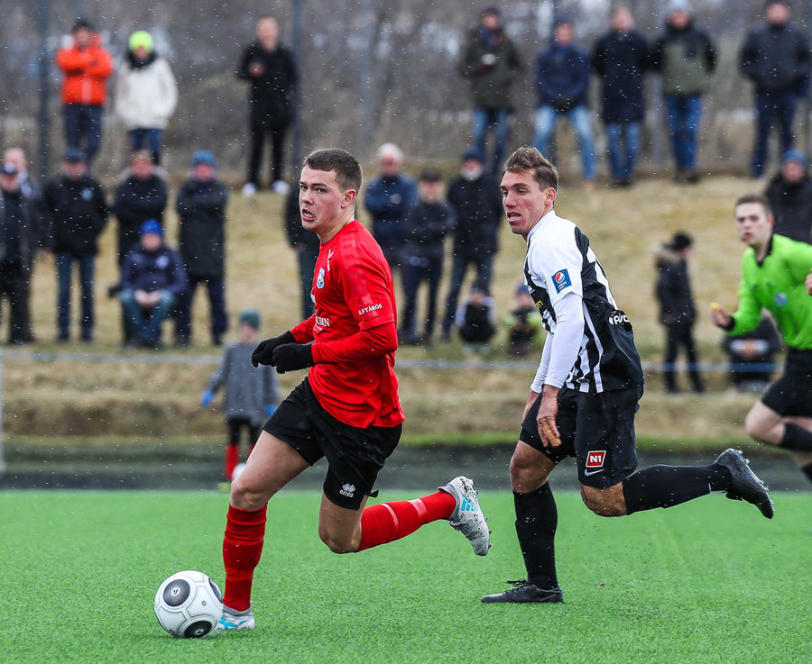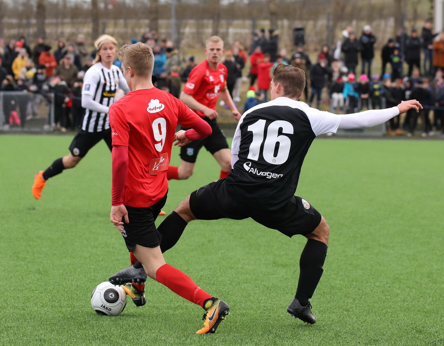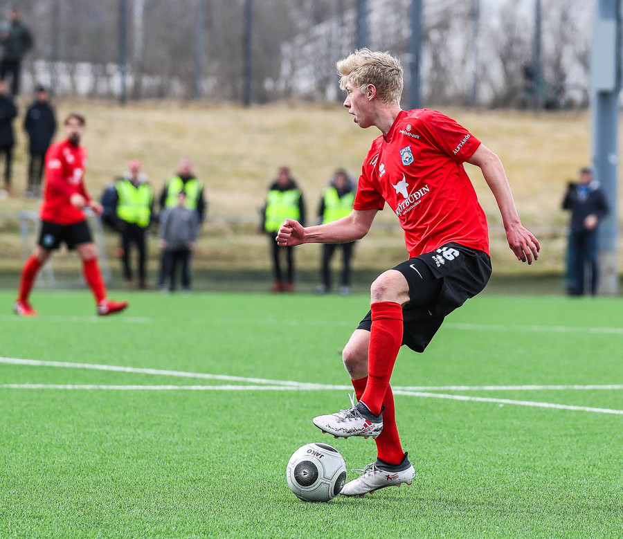 Atli Sigurjóns fær utanáhlaup frá Morten Beck, sem krossar boltanum á fjær þar sem Andre Bjerregaard ætlar að hamra boltann inn en kixar hann! Nóg af færum í þessum leik.