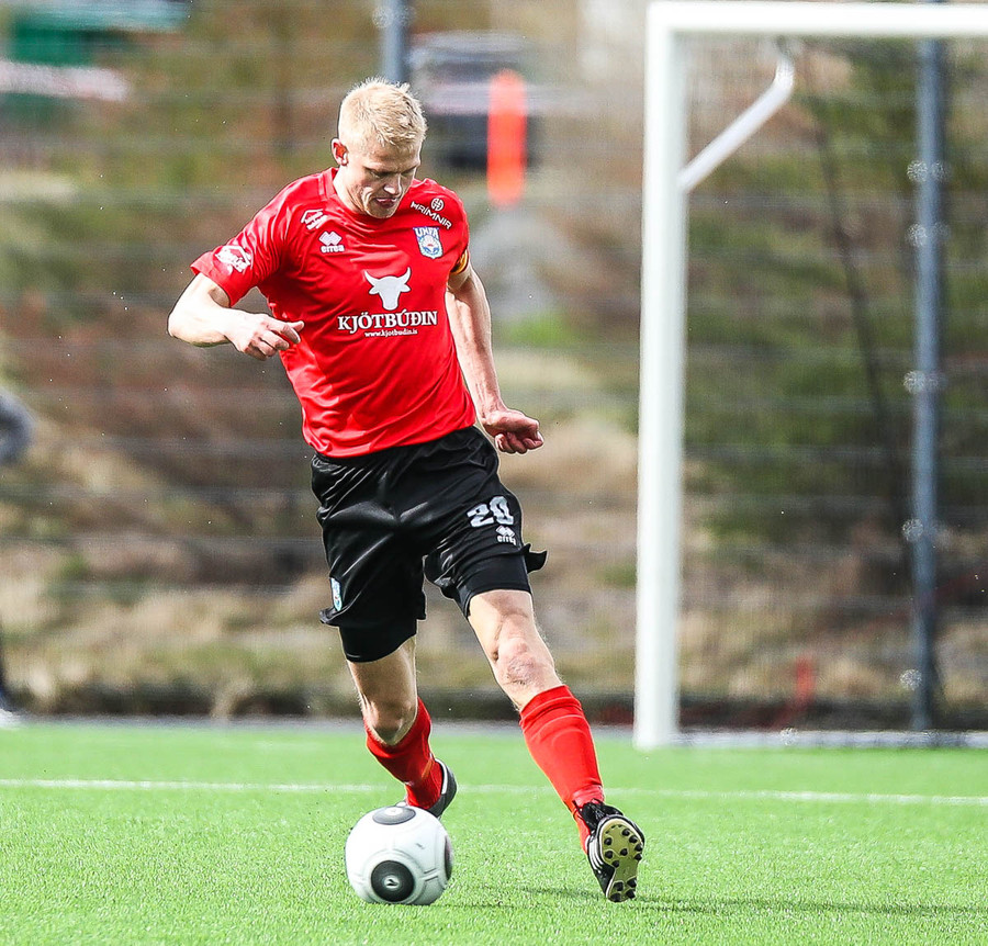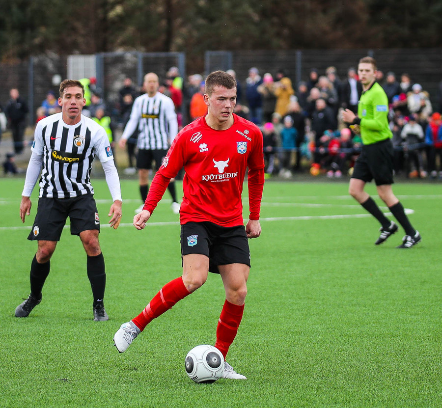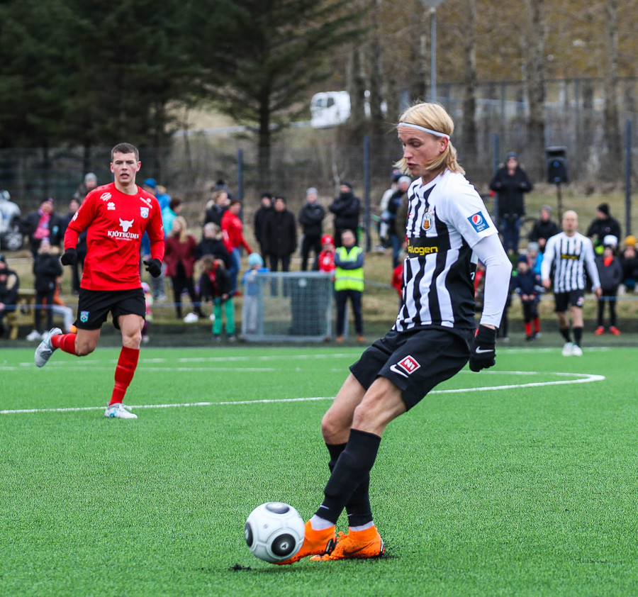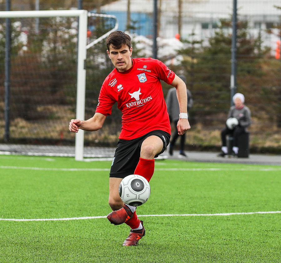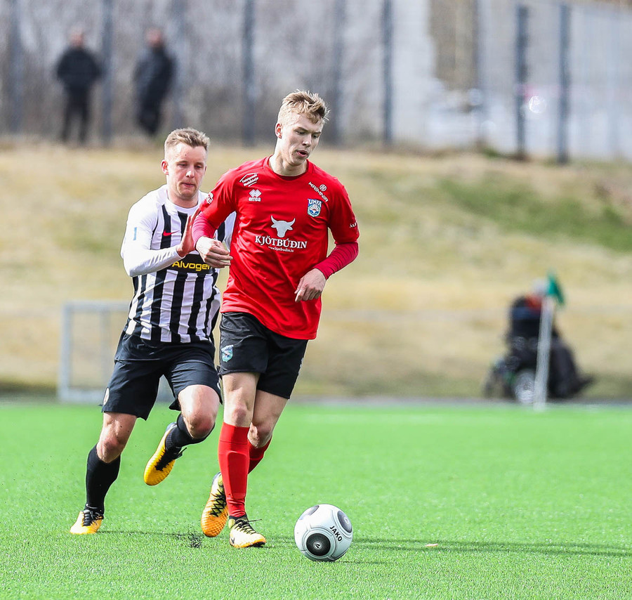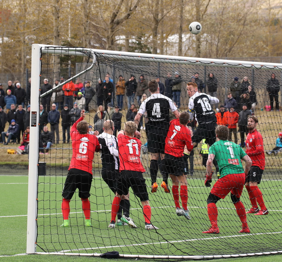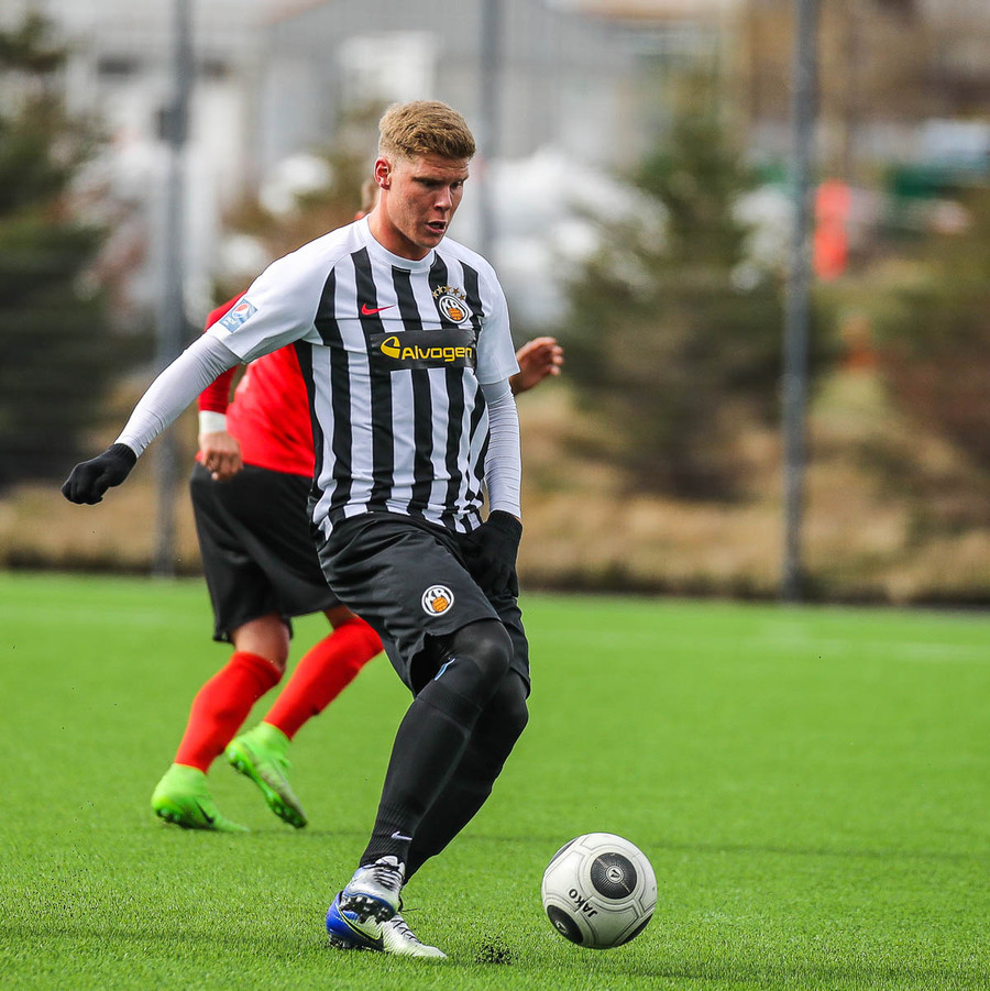 Atli Sigurjóns fær utanáhlaup frá Morten Beck, sem krossar boltanum á fjær þar sem Andre Bjerregaard ætlar að hamra boltann inn en kixar hann! Nóg af færum í þessum leik.