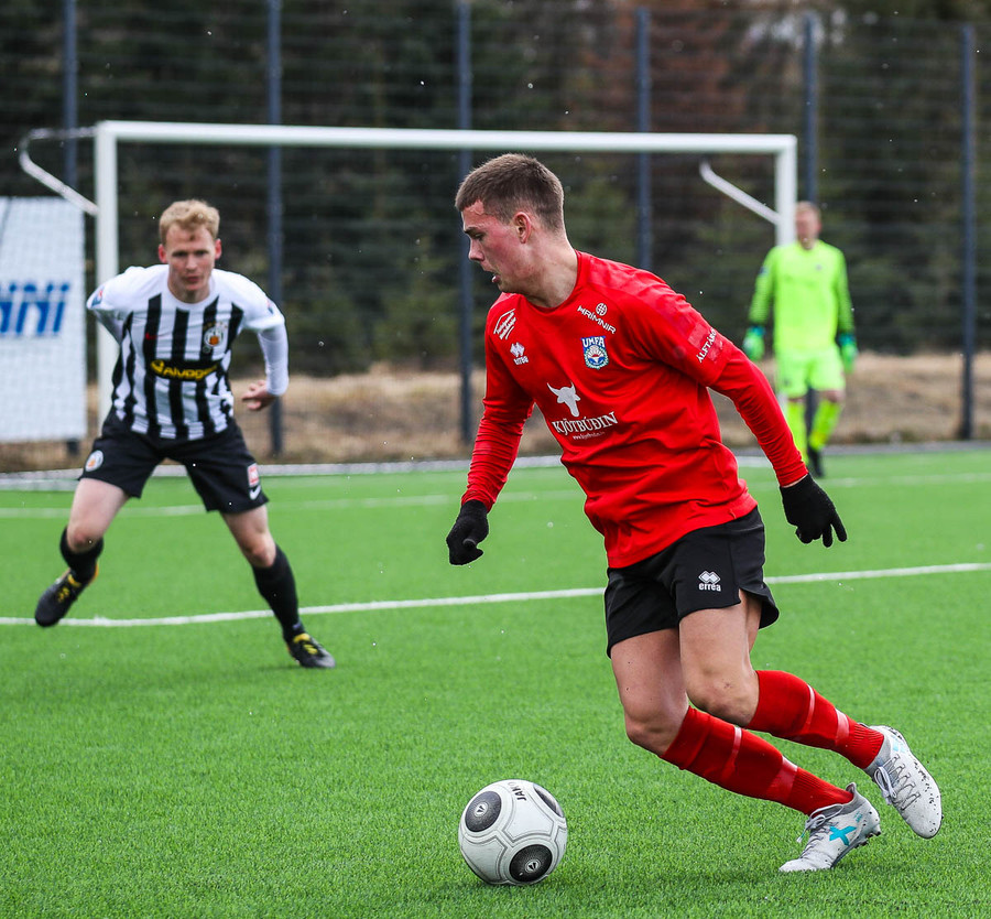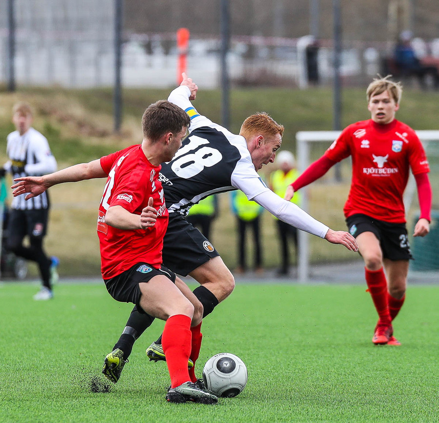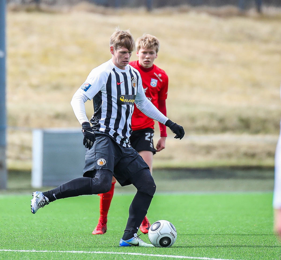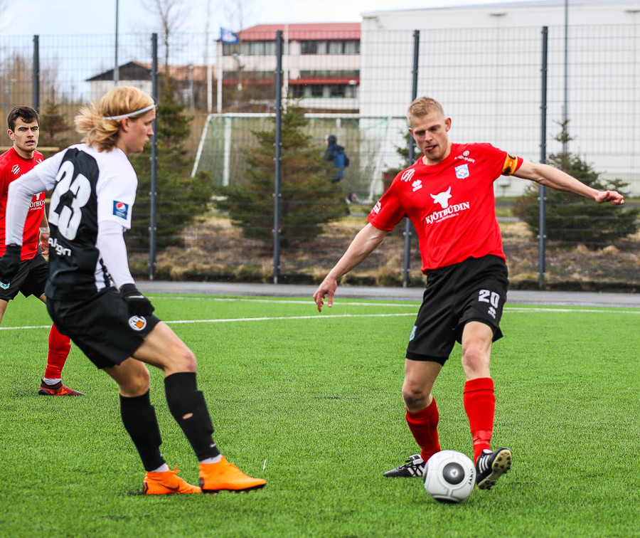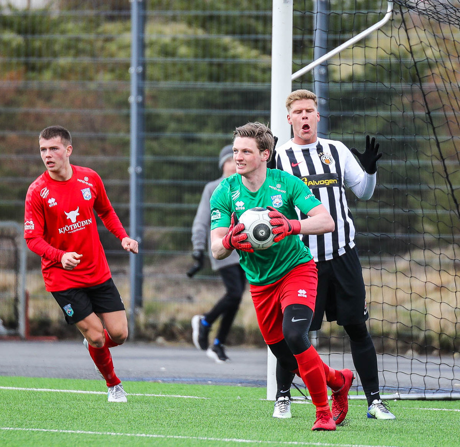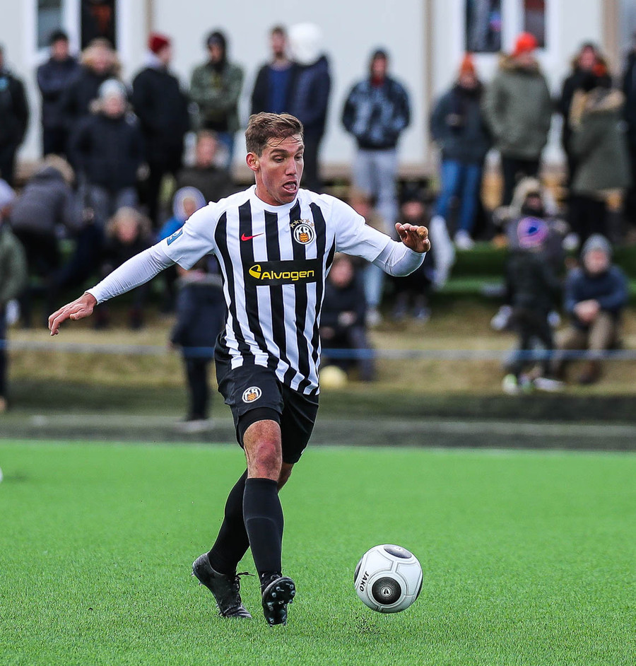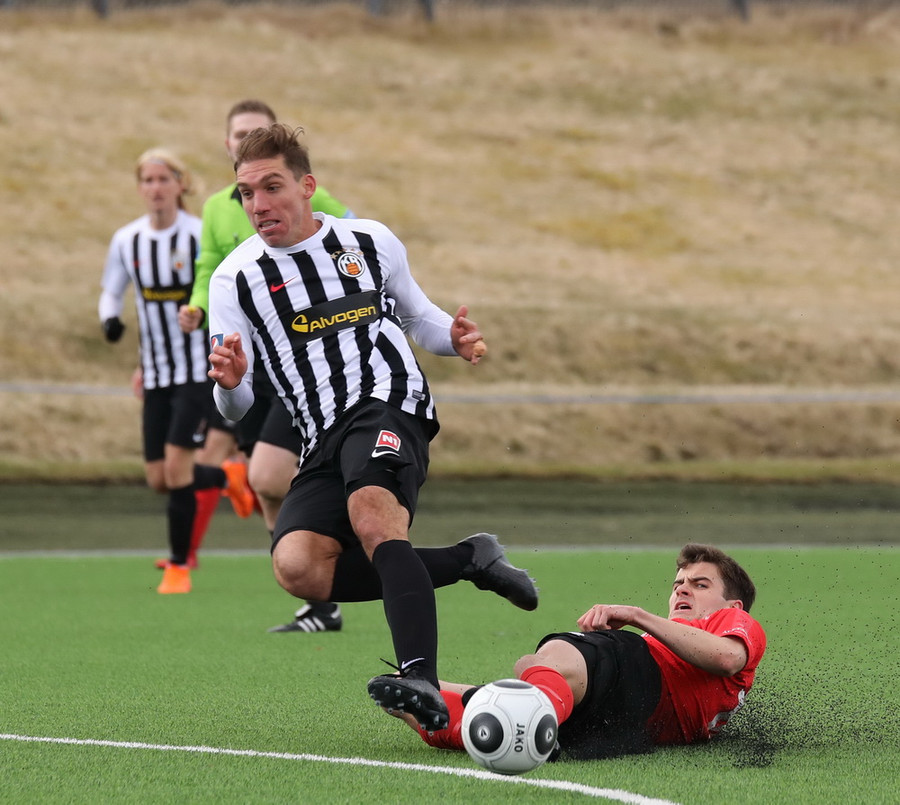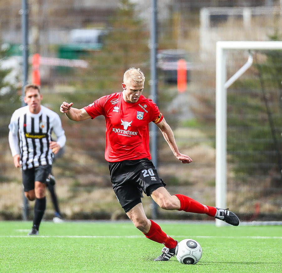 Atli Sigurjóns fær utanáhlaup frá Morten Beck, sem krossar boltanum á fjær þar sem Andre Bjerregaard ætlar að hamra boltann inn en kixar hann! Nóg af færum í þessum leik.