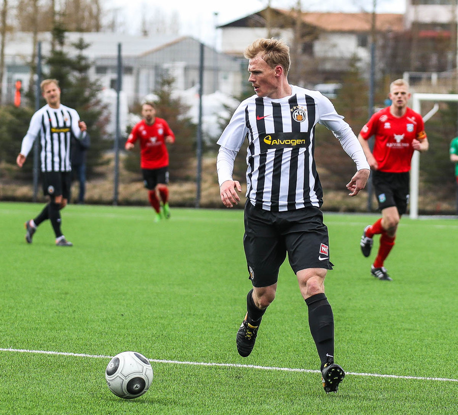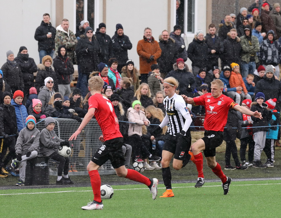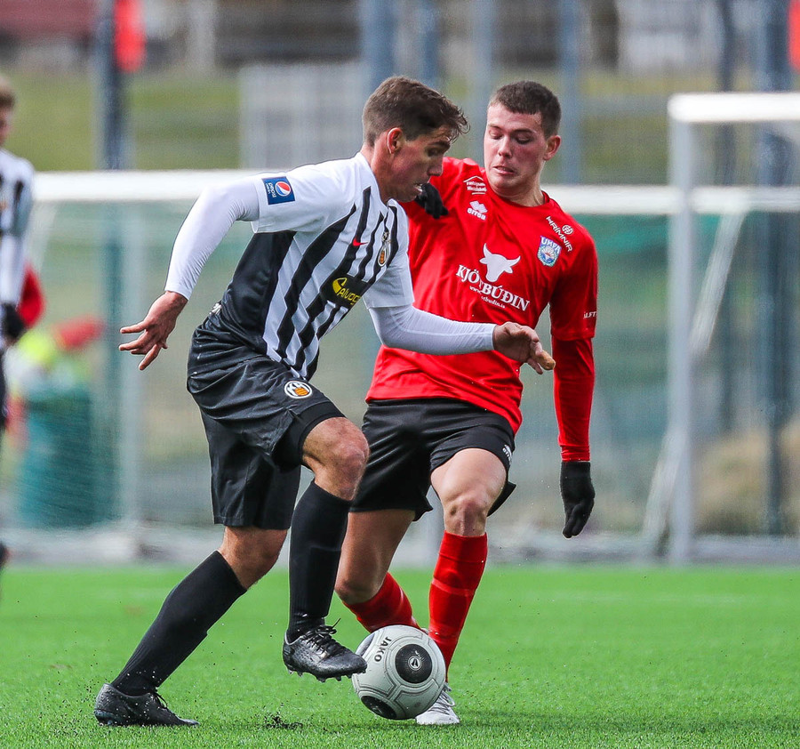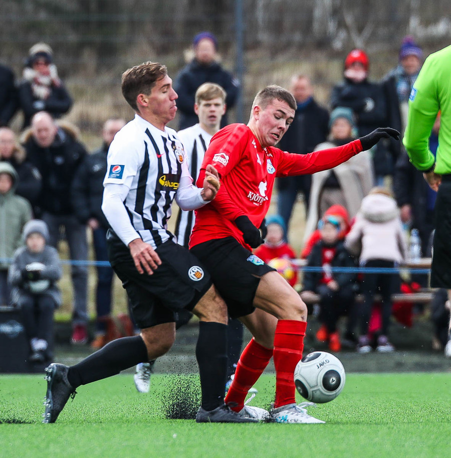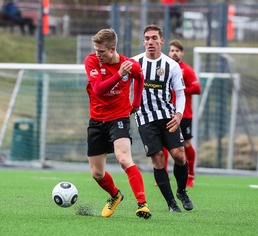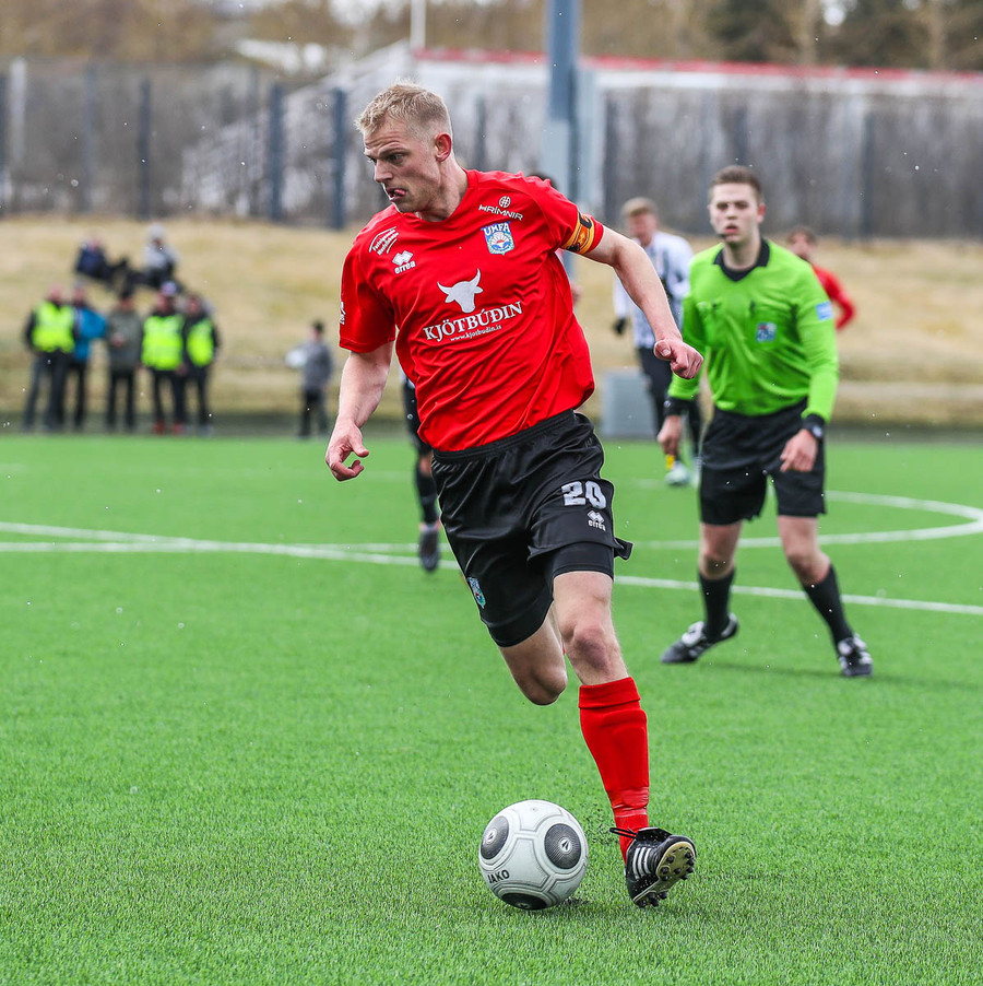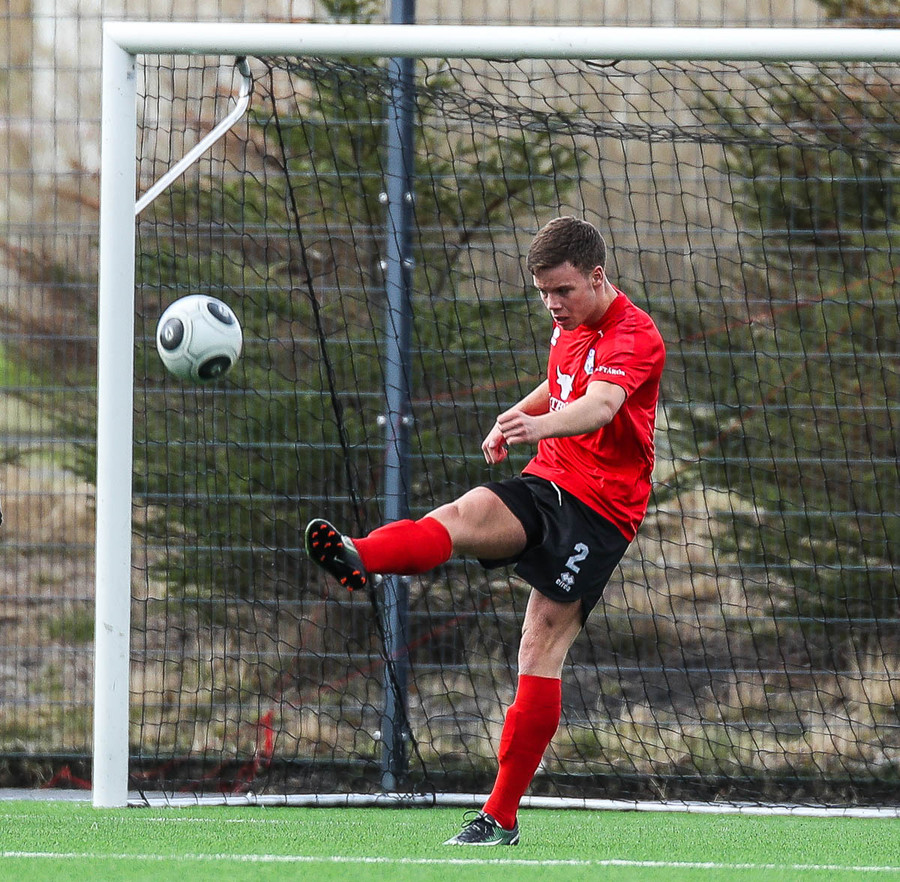 Atli Sigurjóns fær utanáhlaup frá Morten Beck, sem krossar boltanum á fjær þar sem Andre Bjerregaard ætlar að hamra boltann inn en kixar hann! Nóg af færum í þessum leik.