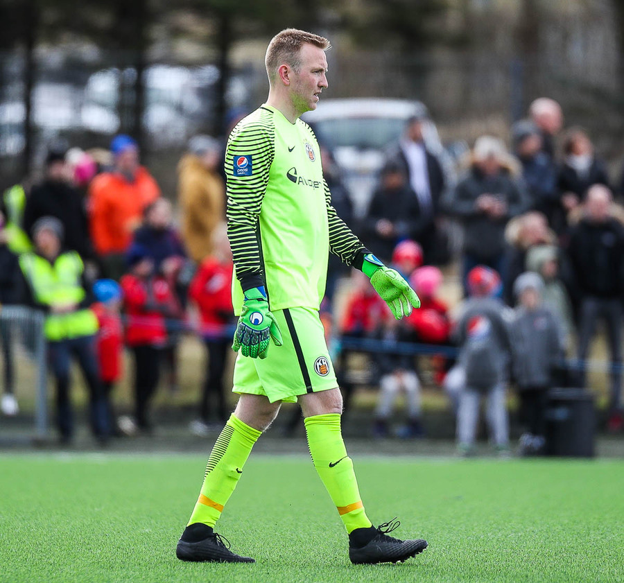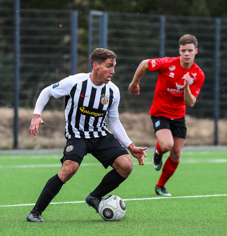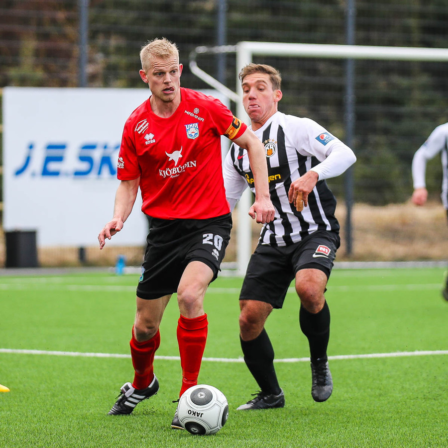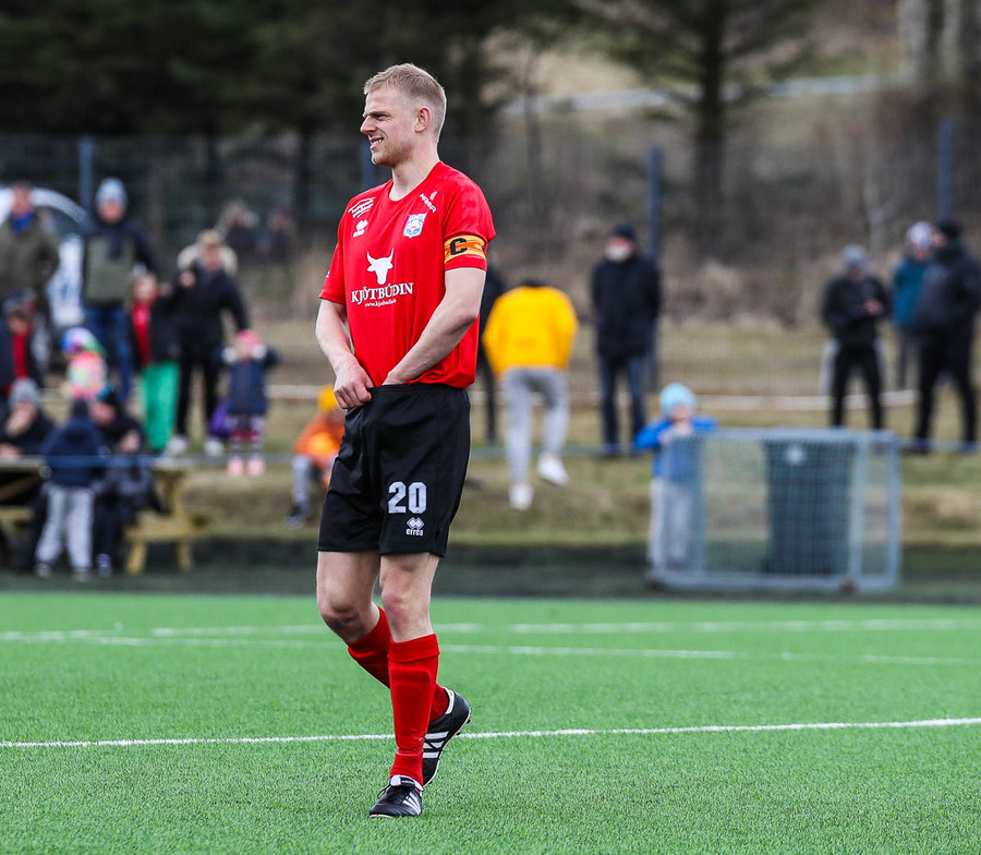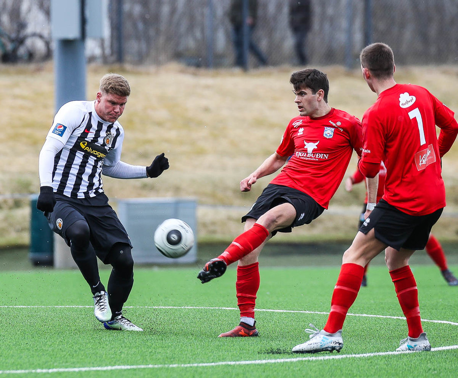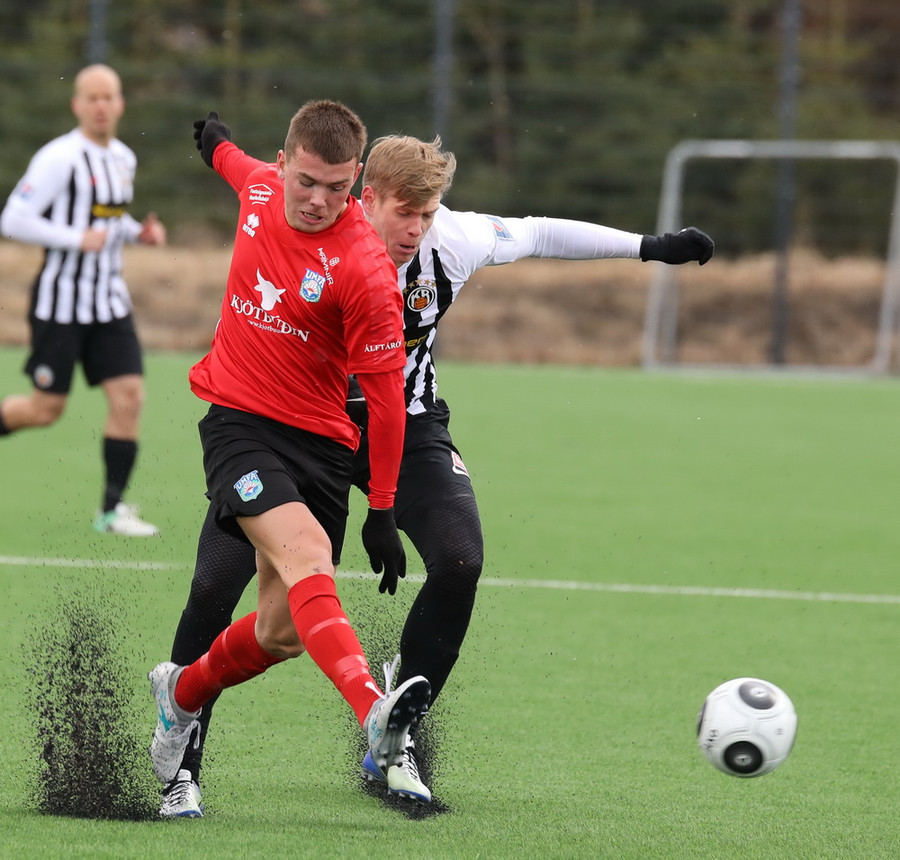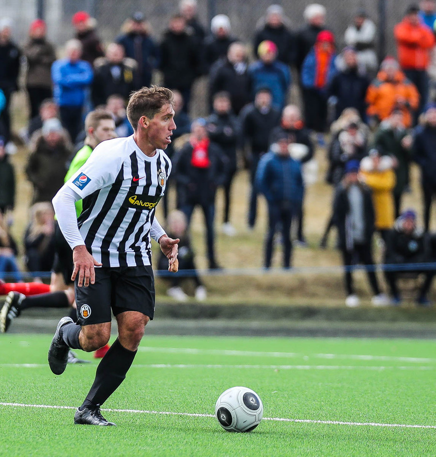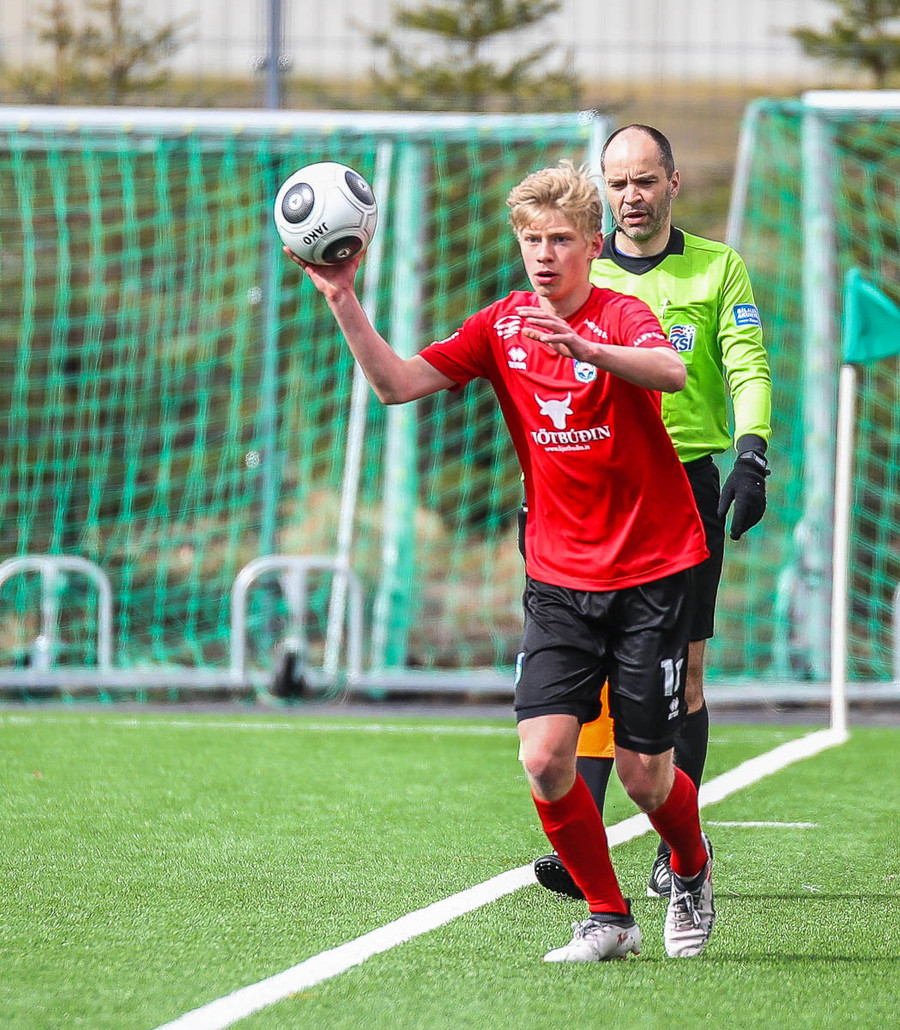 Atli Sigurjóns fær utanáhlaup frá Morten Beck, sem krossar boltanum á fjær þar sem Andre Bjerregaard ætlar að hamra boltann inn en kixar hann! Nóg af færum í þessum leik.