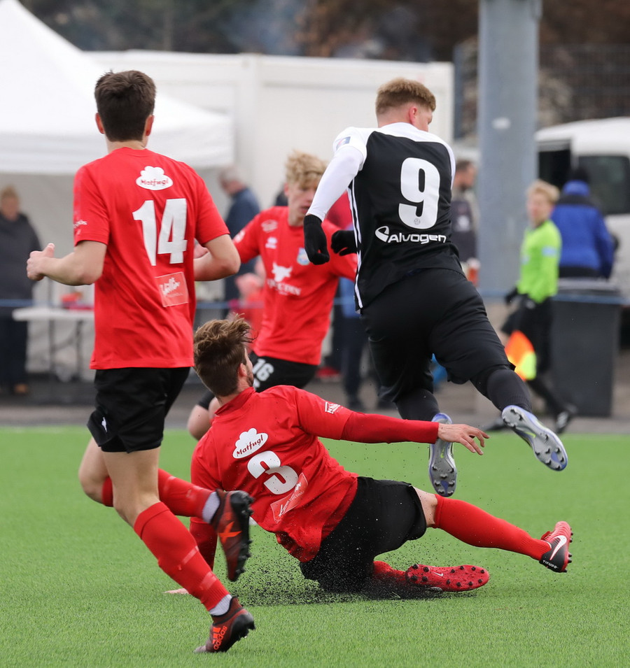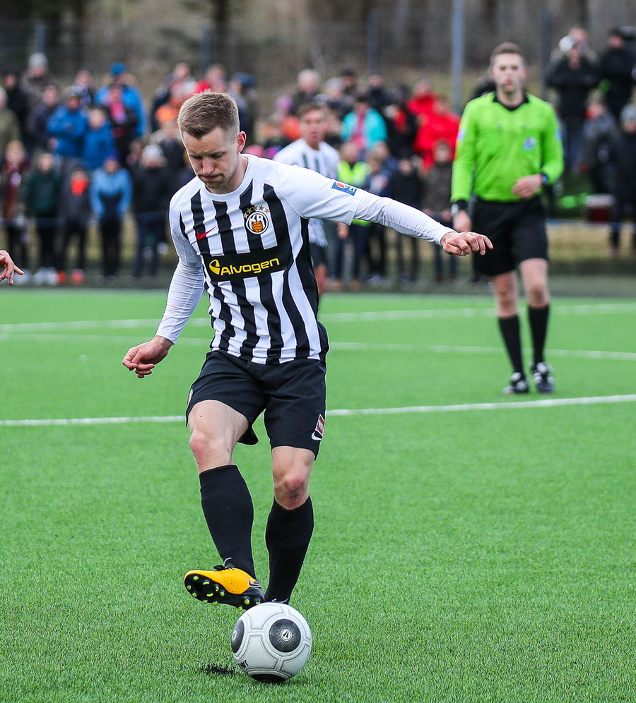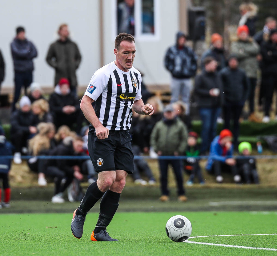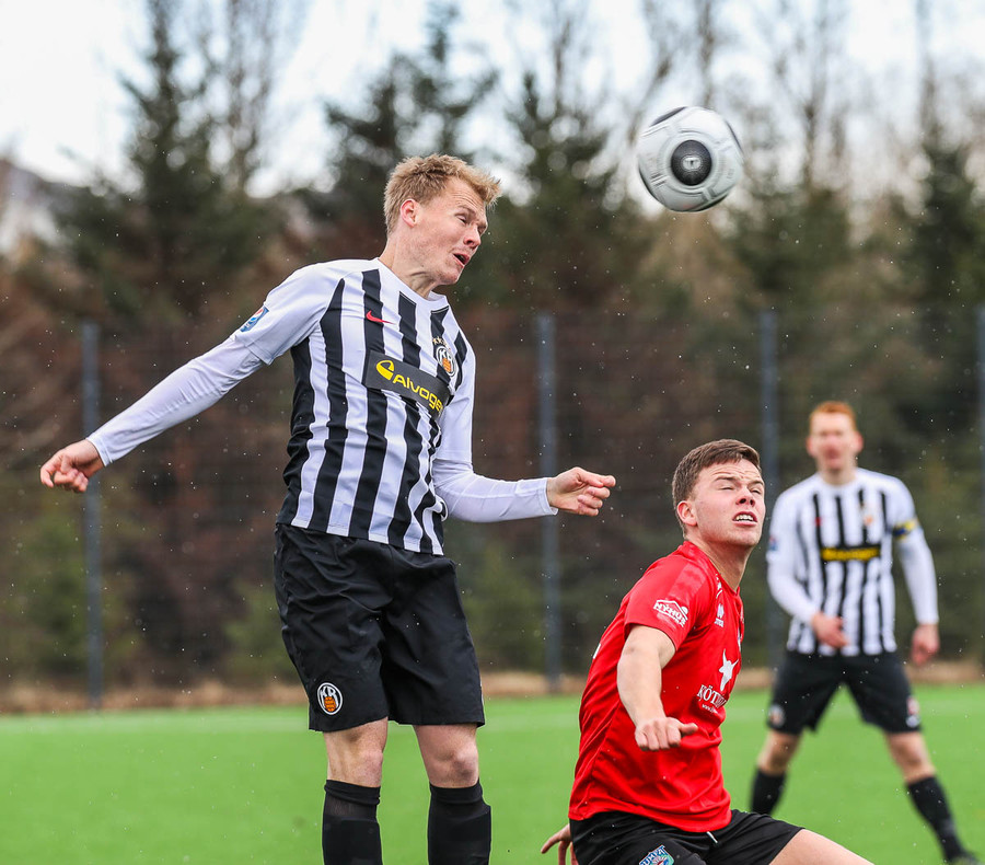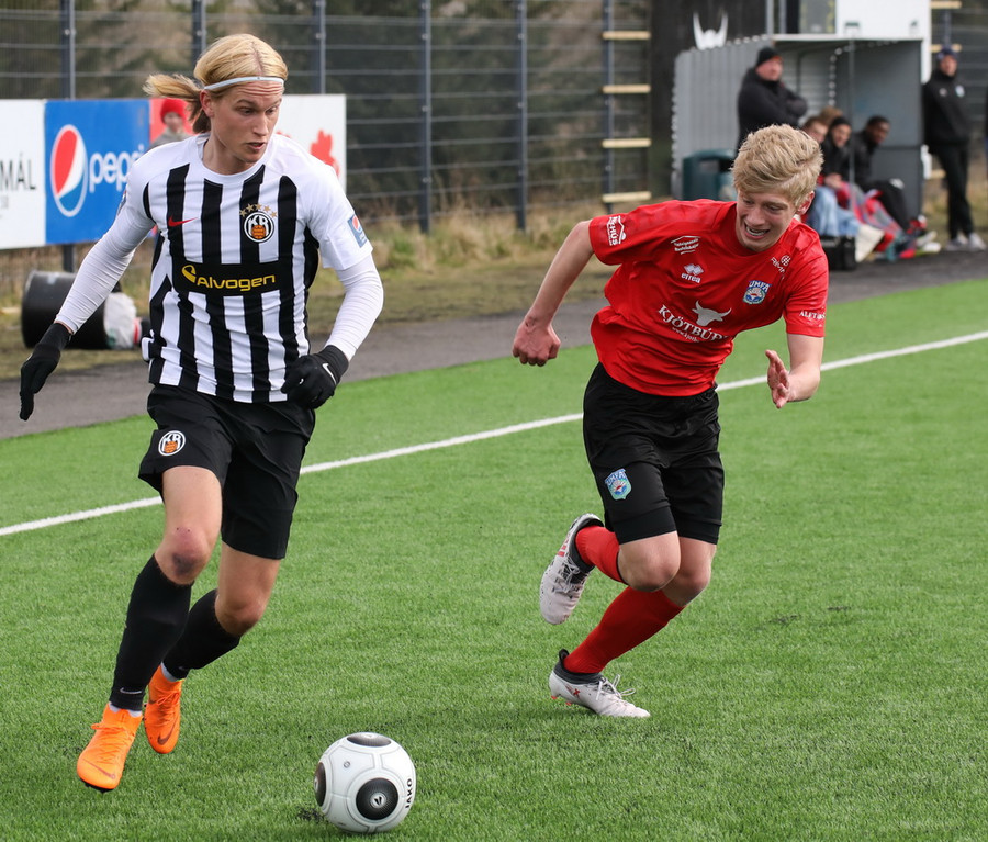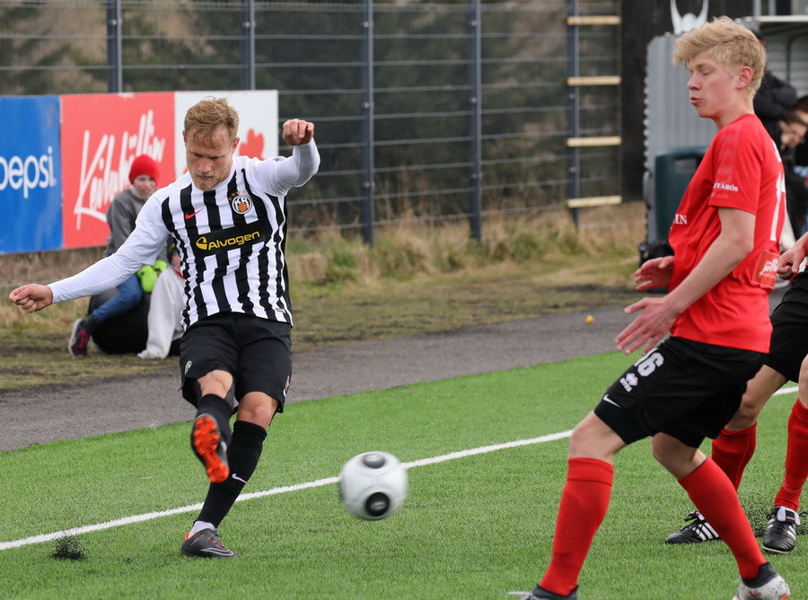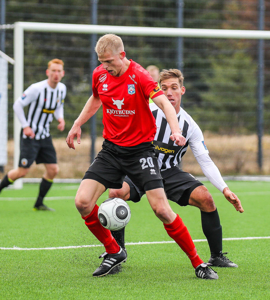 Atli Sigurjóns fær utanáhlaup frá Morten Beck, sem krossar boltanum á fjær þar sem Andre Bjerregaard ætlar að hamra boltann inn en kixar hann! Nóg af færum í þessum leik.