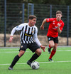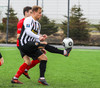 Andri Hrafn tekur hörku tæklingu á Kennie Chopart með boltann á milli, aukaspyrna dæmd við litla hrifningu Mosfellinga, KR-ingar vilja spjald.