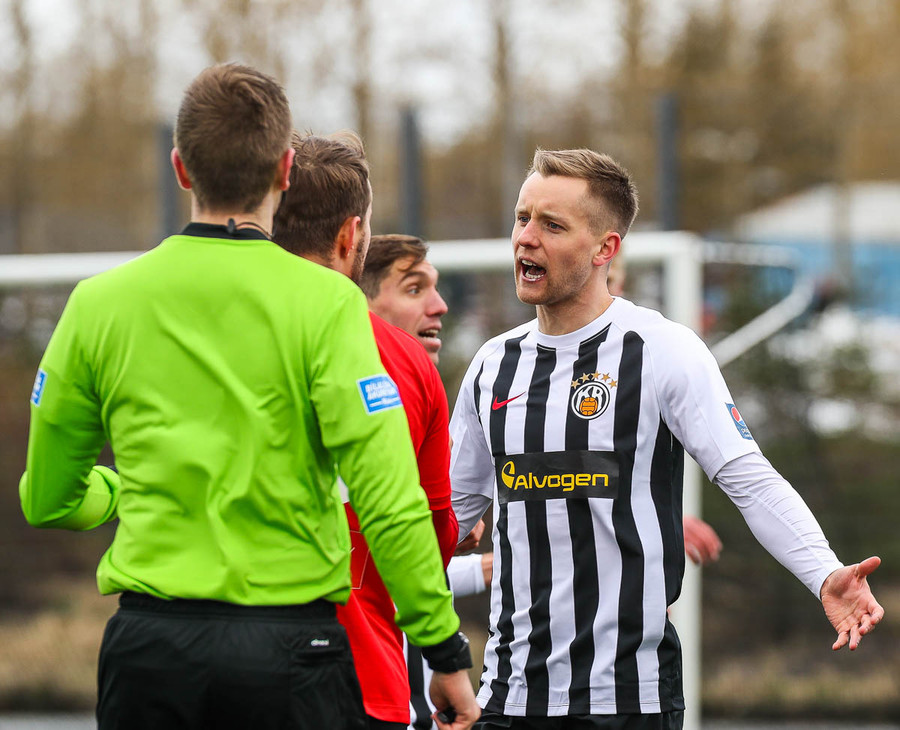 Finnur Orri með harkalega tæklingu á miðjunni, verðskuldað spjald!