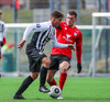 Kennie Chopart með rosalegan klobba á Andra Hrafn og hamrar boltanum fyrir en Mosfellingar hreinsa í innkast.