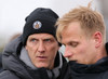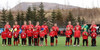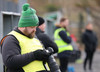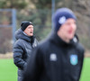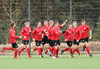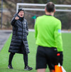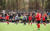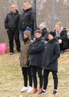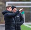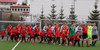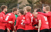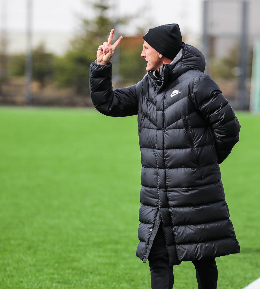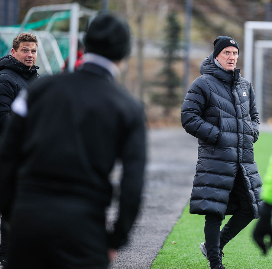 Liðin eru að rölta inn úr upphitun og undirbúa sig fyrir lokamessu þjálfaranna áður en leikurinn hefst! 10 mín í leik.