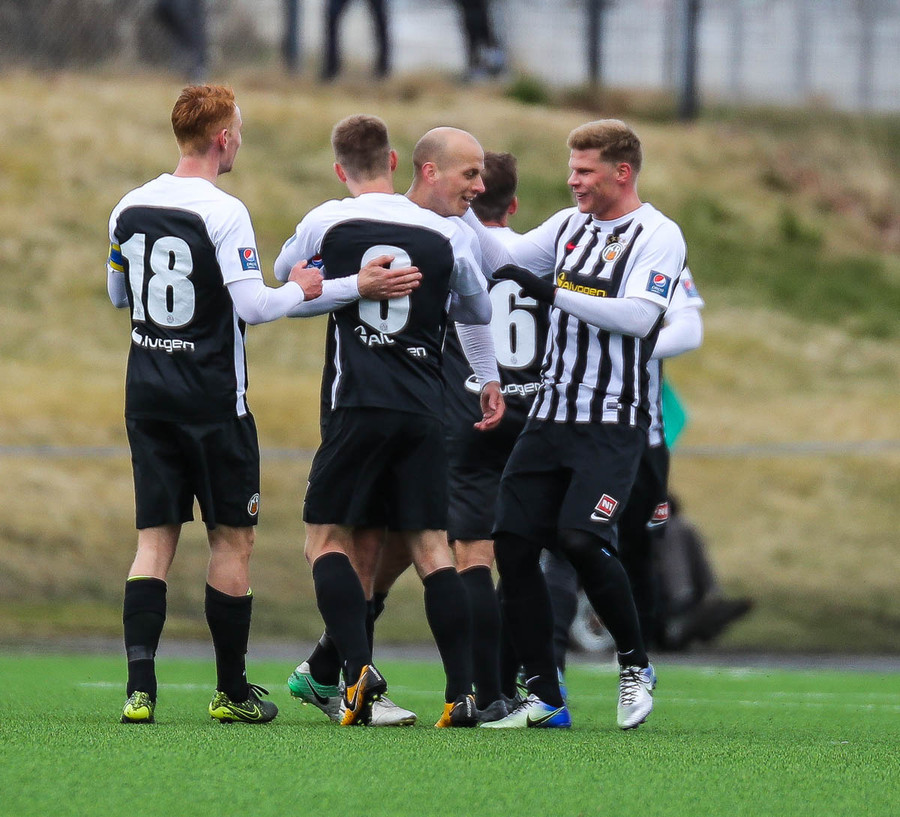 Heimamenn eru hættir, Andri Hrafn sendi bara á Bjerregaard sem fann Bjögga í góðu færi, Bjögga brást ekki bogalistinn í þetta skiptið og setti hann í hornið.