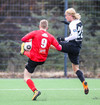 Chopart tekur hornspyrnu sem berst til Bjögga Stef í dauðafæri en Andri nær að handsama boltann.