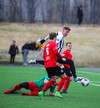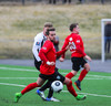 Atli Sigurjóns með skemmtilegan sprett inn á vítateig heimamanna en missir boltann útaf, Mosfellingar tæpir á að brjóta á Atla.