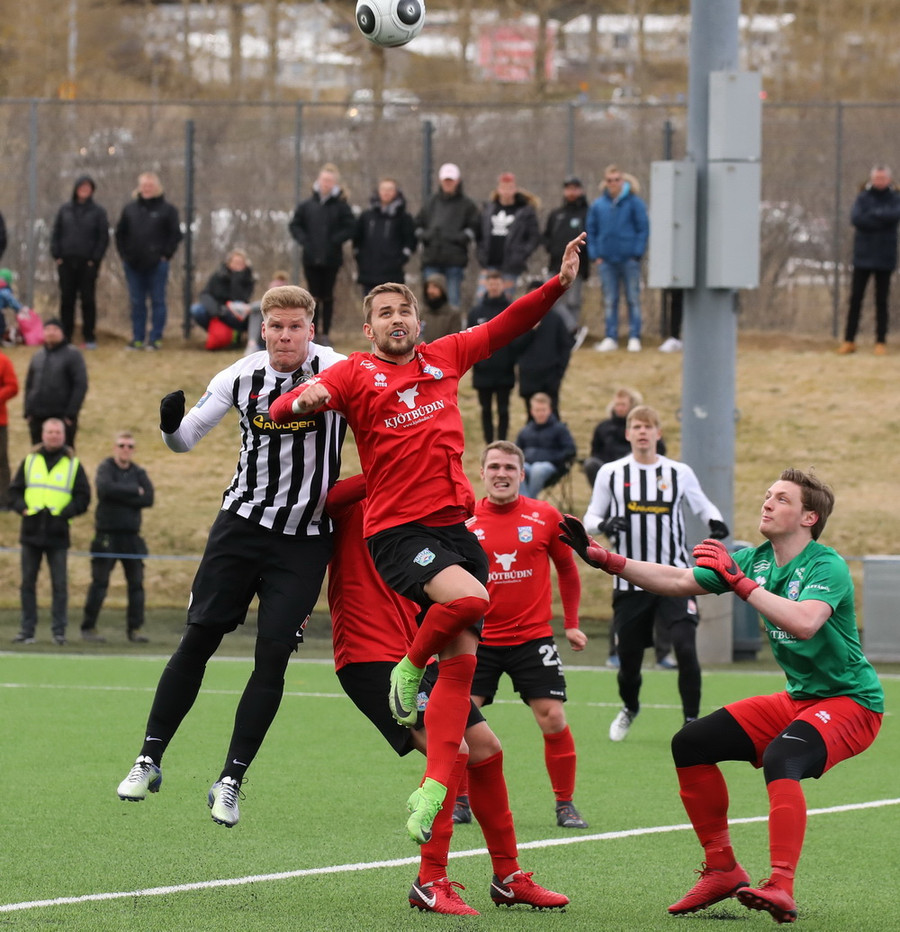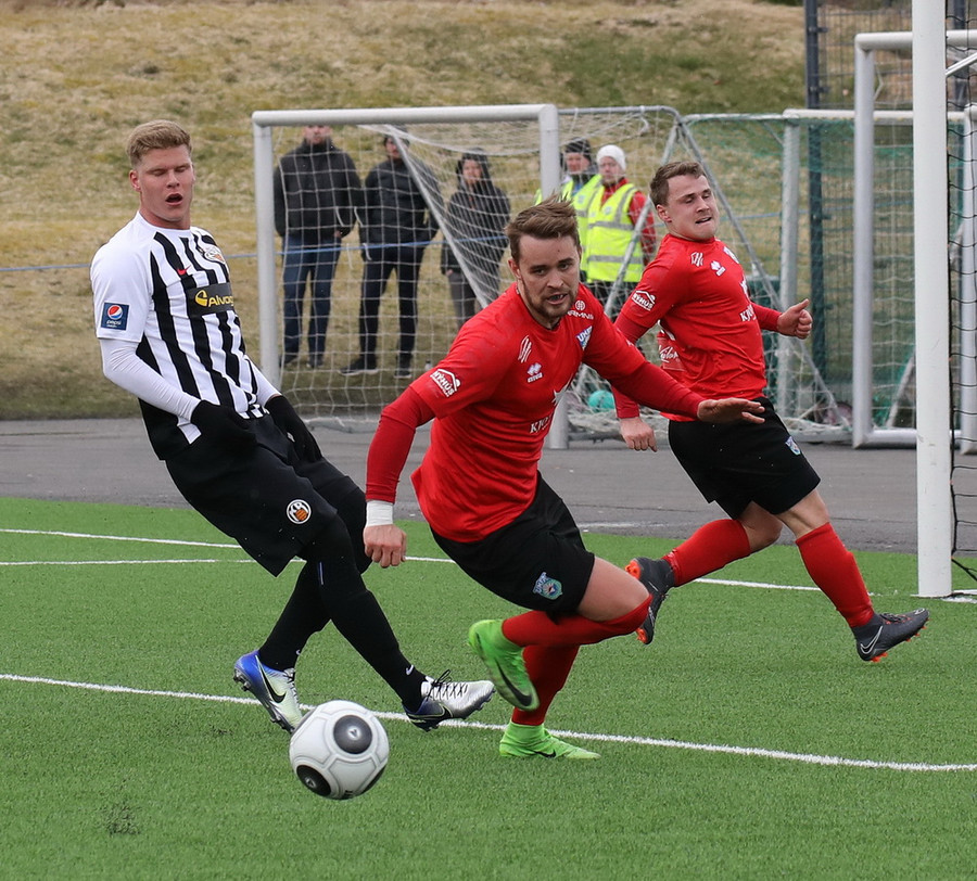 KR-ingar fengu horn, Atli kom með draumabolta sem Aron Bjarki stangaði í netið.