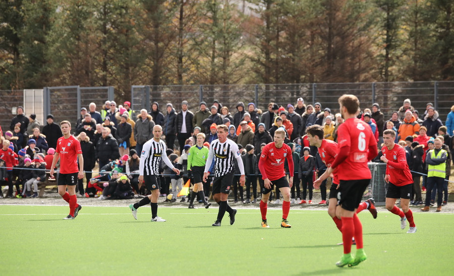 Þessar fyrstu mínútur fara virkilega vel af stað, bæði lið að pressa stíft og ekki að sjá að það sé heil deild á milli liðanna.