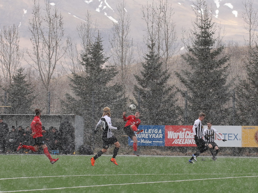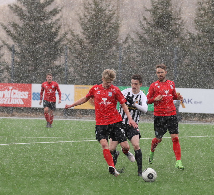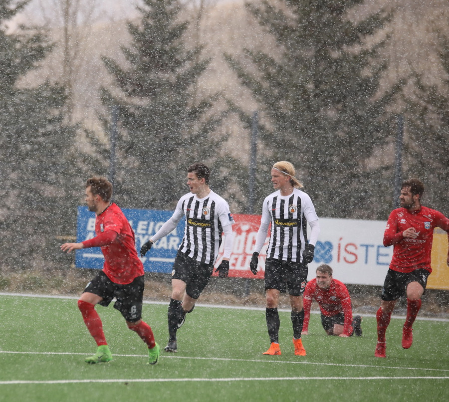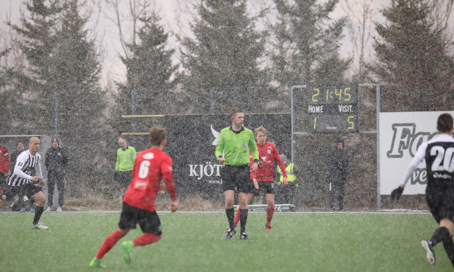 Tvöföld skipting hjá gestunum og það er komið haglél!