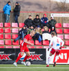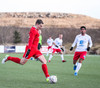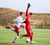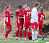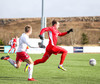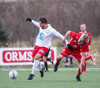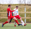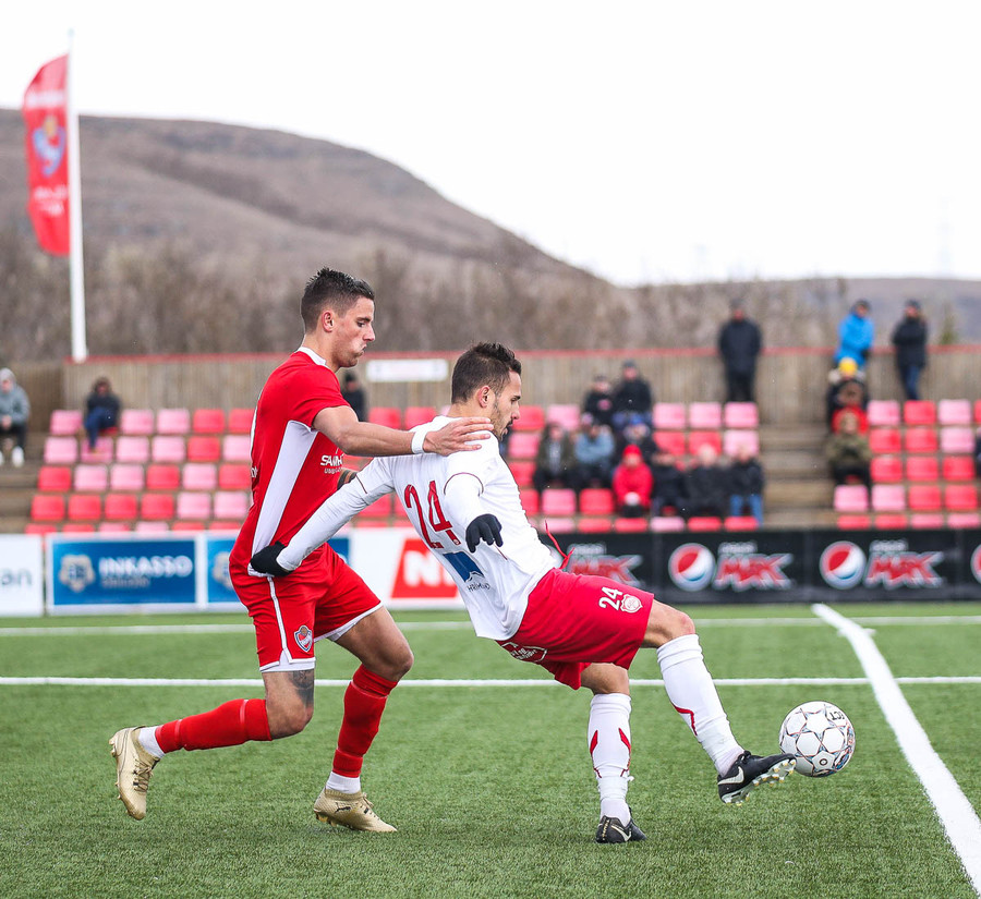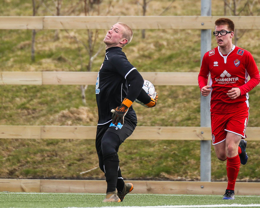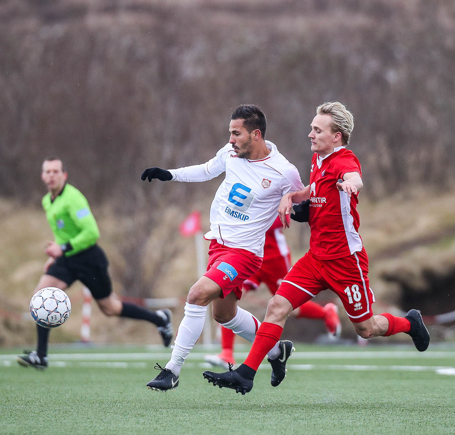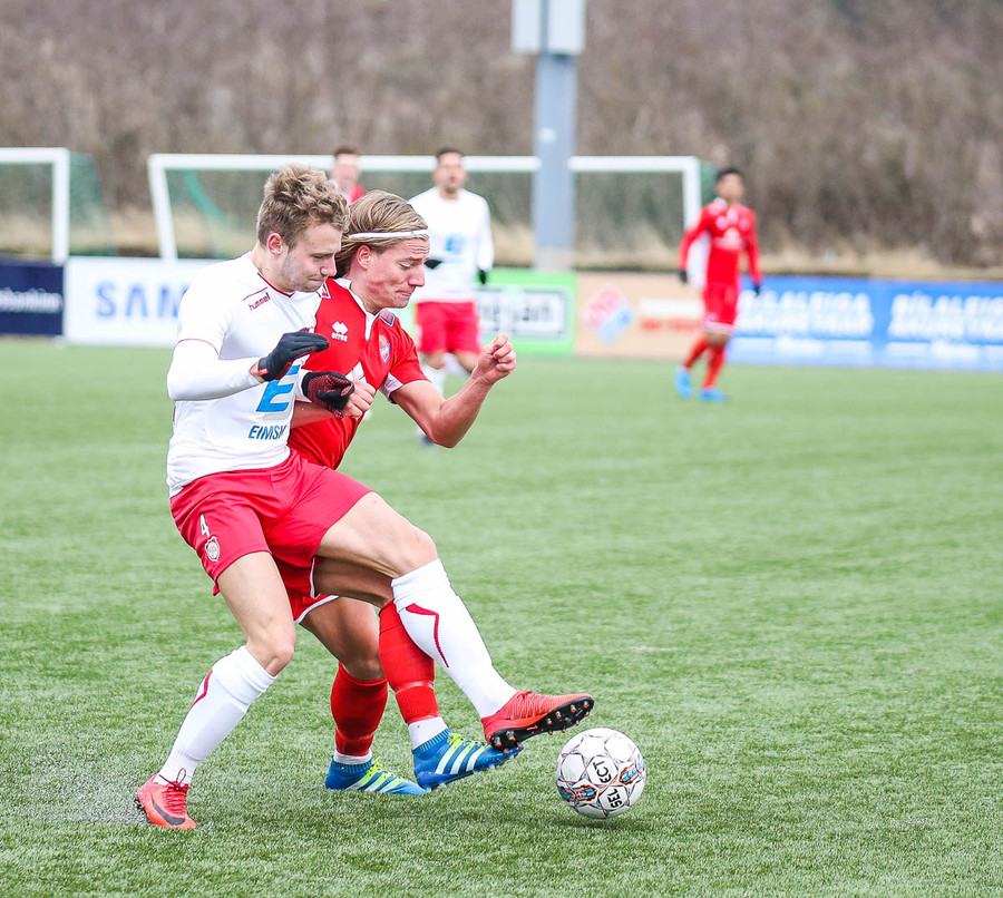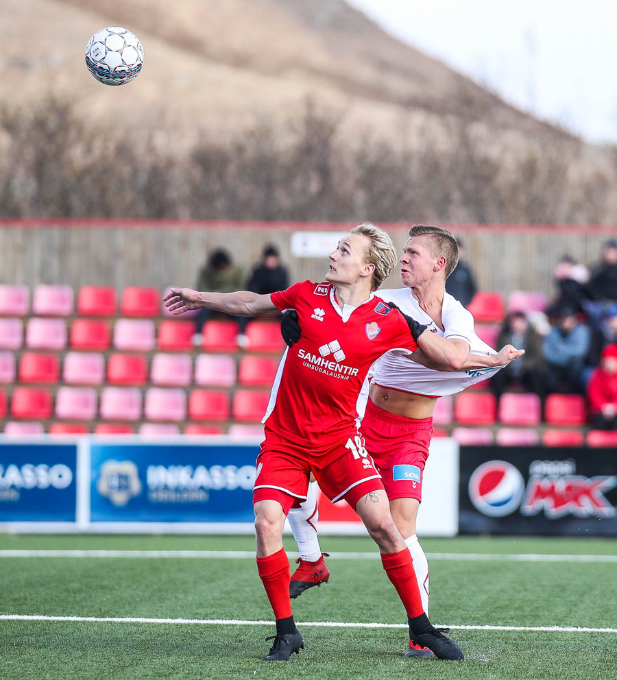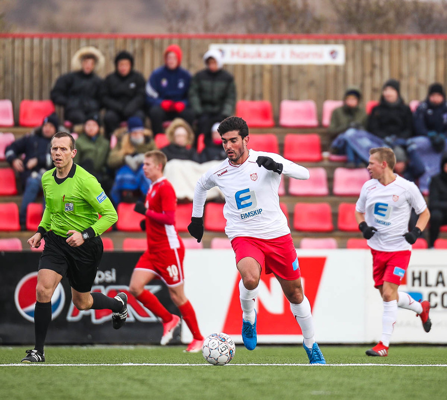 Sveinn Elías að gera sig líklega á fjærstönginn, vinnur hornspyrnu sem Hakar skalla frá. Guðni á svo skot sem fer langt yfir og framhjá