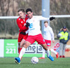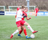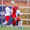 Þórður Jón er seigur í framlínu Hauka, vinnur hornspyrnu eftir baráttu í teignum.