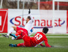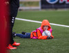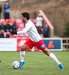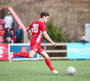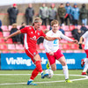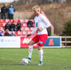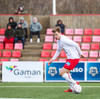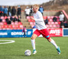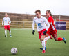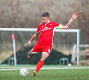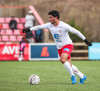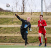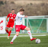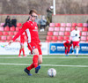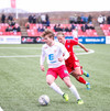 Aron Kristófer reynir skot eftir aukaspyrnu rétt við miðju sem fer langt framhjá