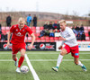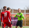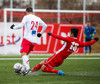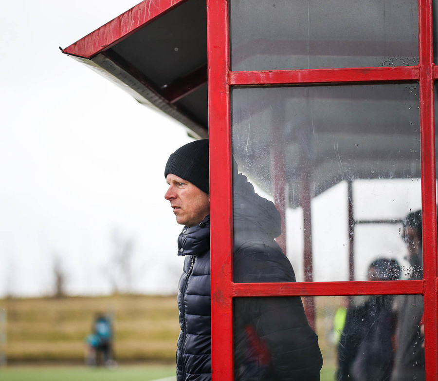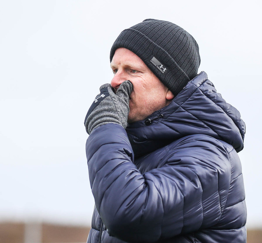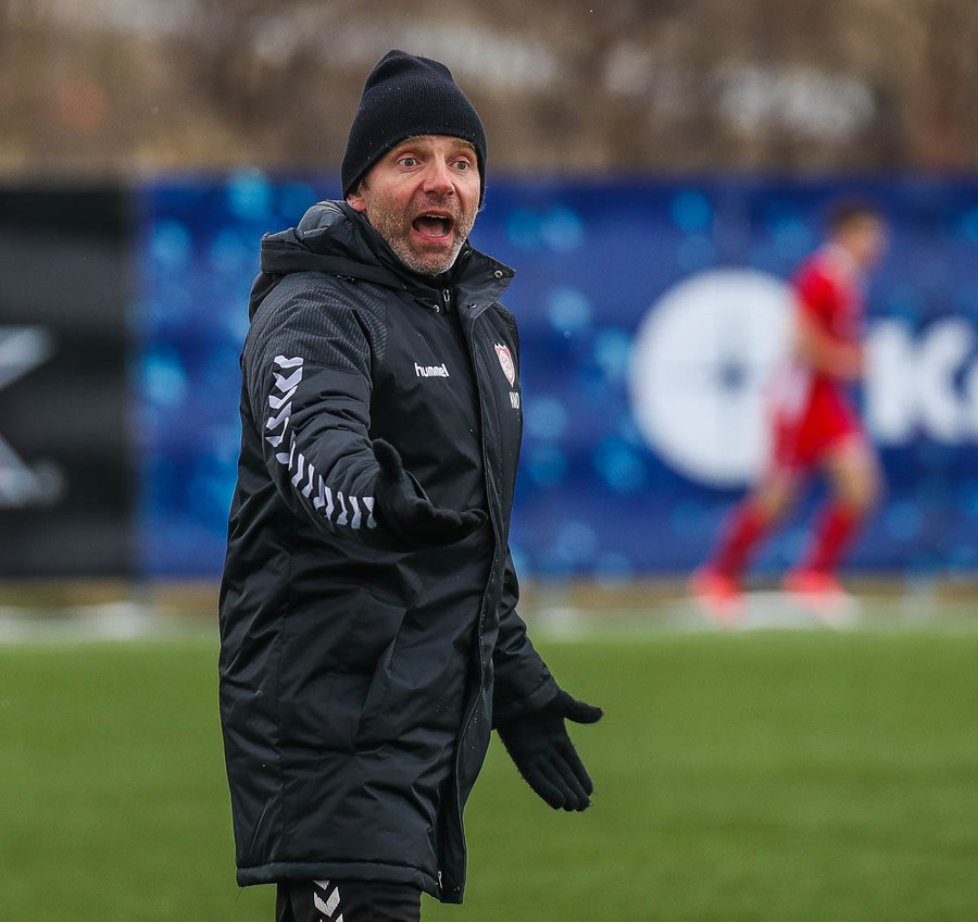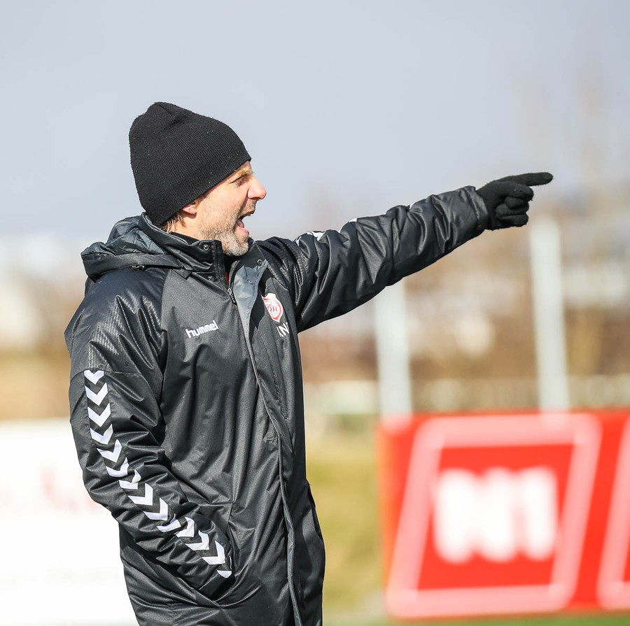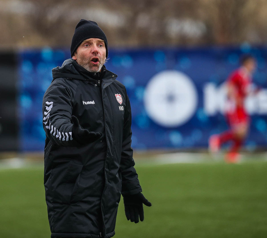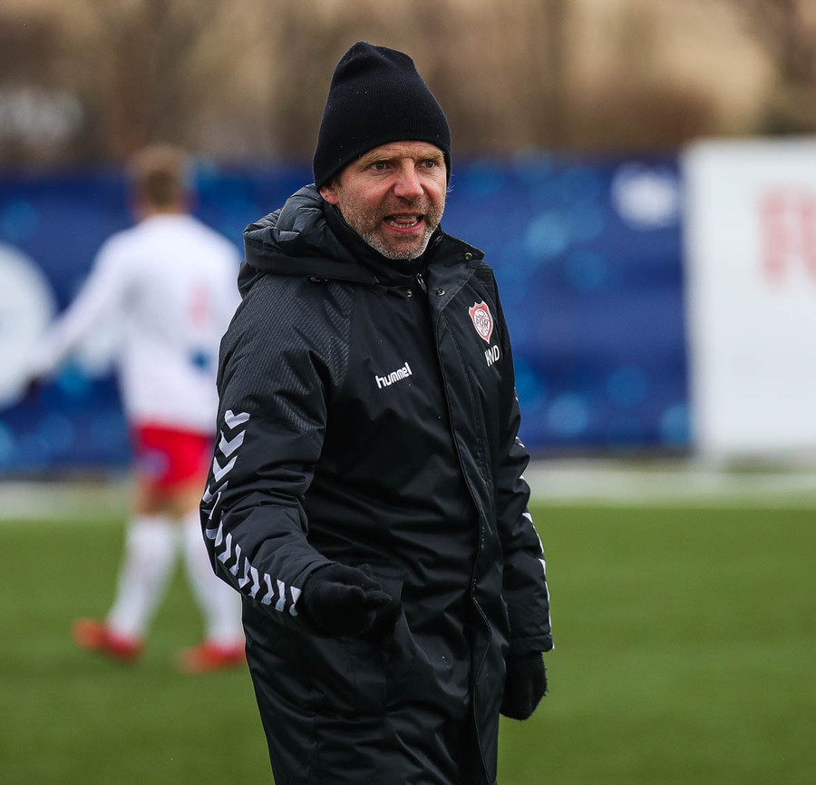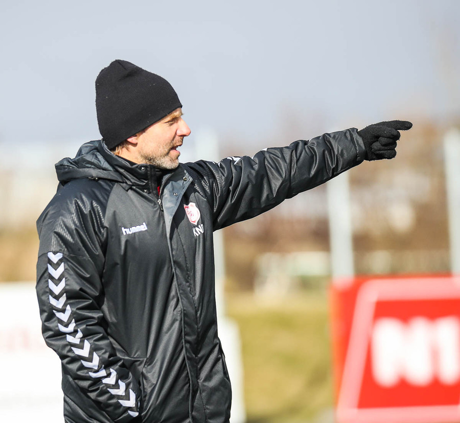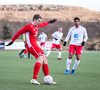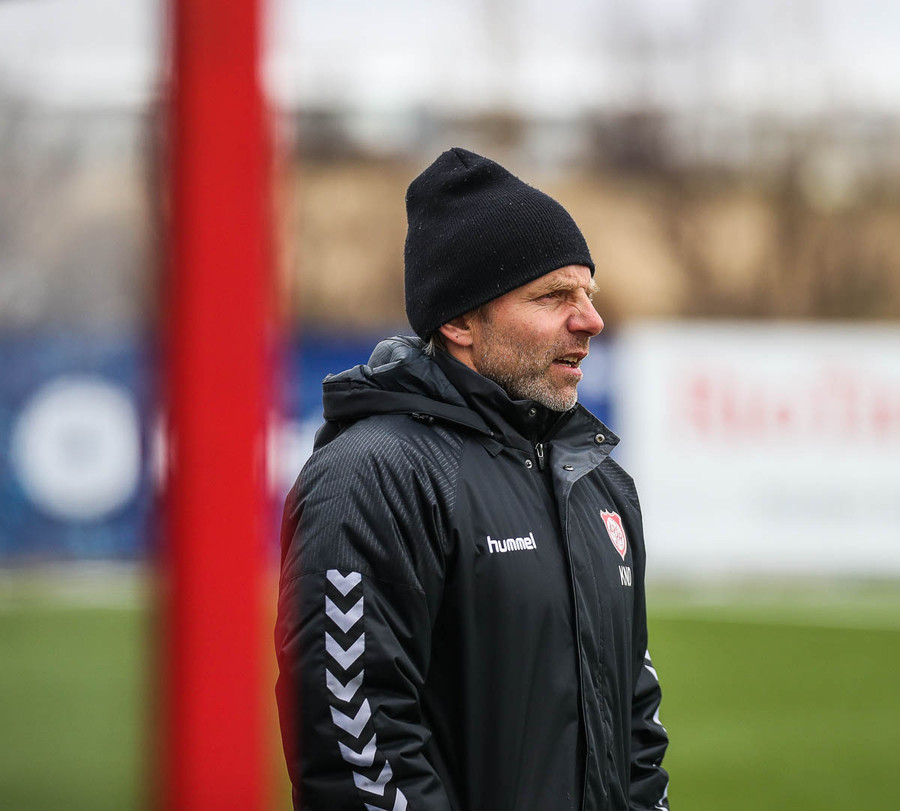 Liðin hita upp á hvítum vellinum, smá snjókoma sakar ekki. Það blæs aðeins á annað markið sem gæti haft smá áhrif hér í dag.
