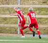 Liðin rölta inn á völlinn, Haukar í sínum rauðu búningum og Þórsarar í hvítum.