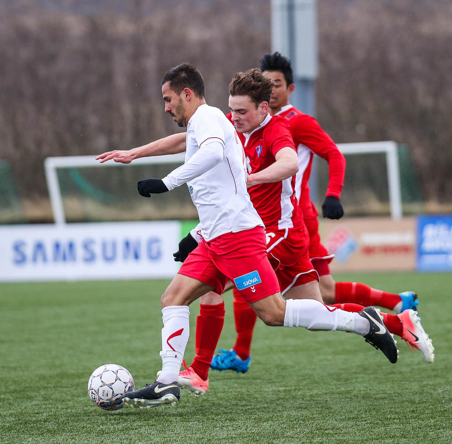 Loftur virðist eitthvað tæpur. Alexander kemur inn á miðjuna