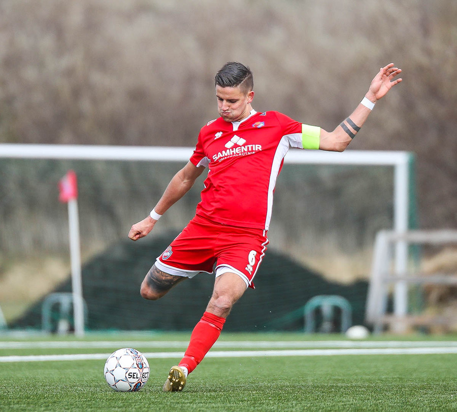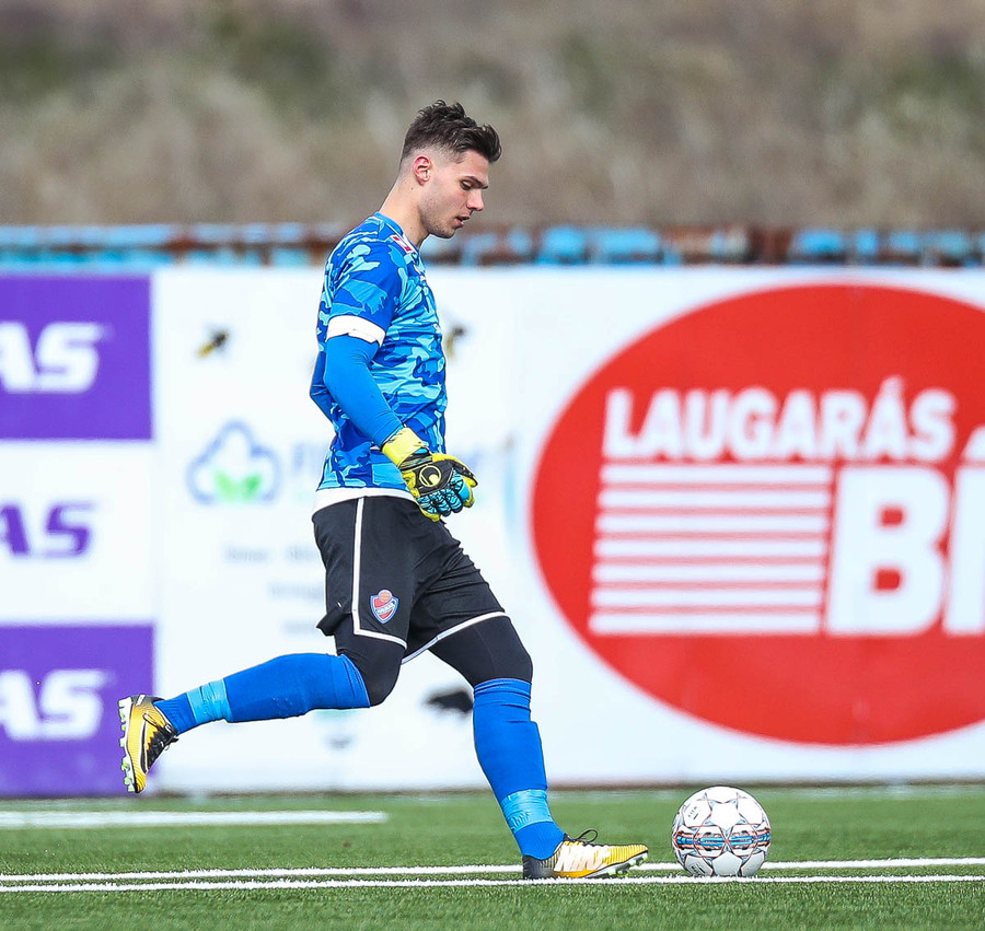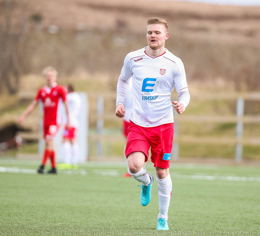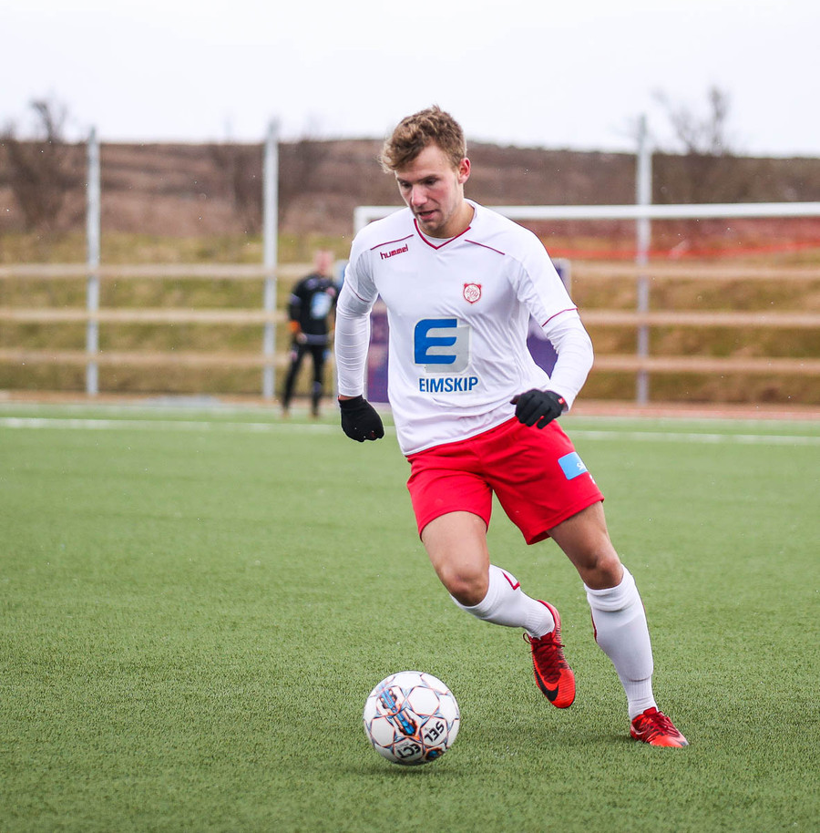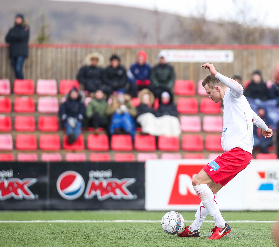 Alexander tekur spyrnuna sem fer yfir Þórsmarkið